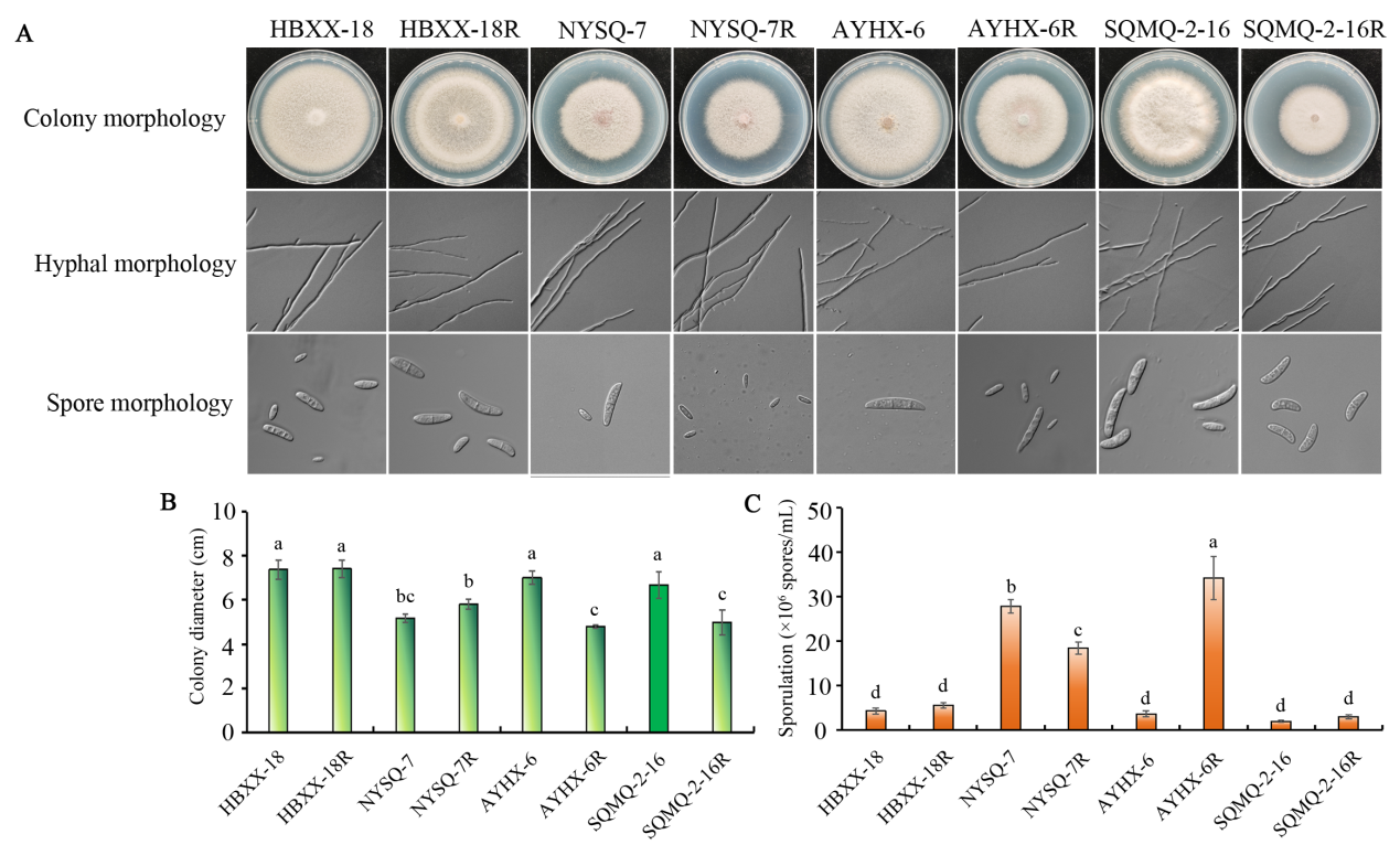 花生根腐病主要是由茄病镰刀菌(Fusarium solani)引起的一种具有破坏性的土传真菌病害,近年来,河南省花生根腐病多发、频发、重发,严重威胁花生的产量和质量。该研究通过化学药剂驯化得到了4株氟唑菌酰羟胺抗性菌株,分析了抗性菌株和亲本菌株(敏感菌株)之间的适合度,发现抗性菌株在菌丝生长、菌丝顶端形态、无性繁殖和致病力方面与亲本菌株相似,表现较高的适合度。交互抗性结果表明氟唑菌酰羟胺与咪鲜胺、氟啶胺、戊唑醇、丙硫菌唑和四霉素之间不存在交互抗性,表明氟唑菌酰羟胺可以和这些杀菌剂混用或轮用,来延缓杀菌剂抗性的发展。序列分析表明抗性菌株中存在FsSdhC1A82V、FsSdhC2L76M、FsSdhC2L135V、FsSdhC2F137L和FsSdhC2F147L突变类型。然而,分子对接分析发现,只有FsSdhC1A82V和FsSdhC2L135V会影响花生根腐病菌对氟唑菌酰羟胺的结合力。本研究对评估花生根腐病菌对氟唑菌酰羟胺的抗性具有重要意义,并对未来使用该杀菌剂防控花生根腐病进行科学指导。