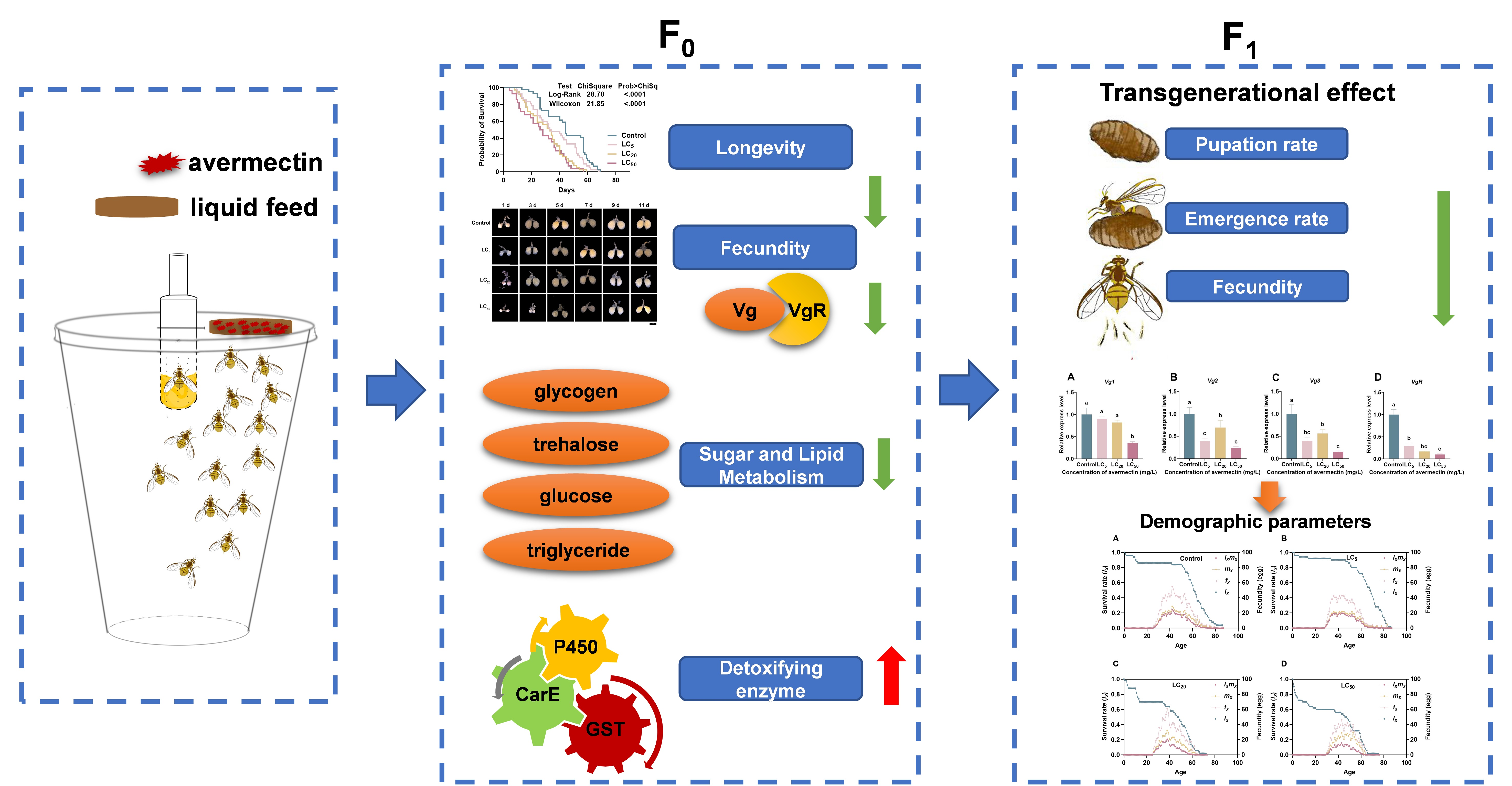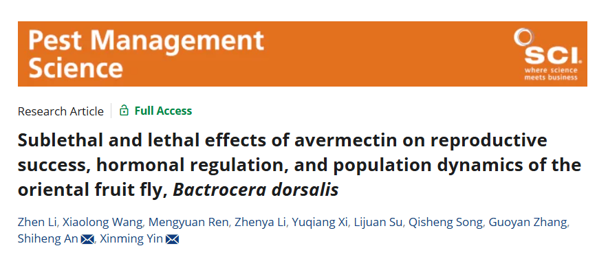一区TOP期刊《Pest Management Science》杂志在线发表了题为“Sublethal and lethal effects of avermectin on reproductive success, hormonal regulation, and population dynamics of the oriental fruit fly, Bactrocera dorsalis”的研究论文。该研究系统评估了阿维菌素对橘小实蝇在繁殖能力、激素调控、能量代谢、解毒酶活性及种群动态发生等多个方面的影响,旨在揭示其潜在的长期生态影响,并为橘小实蝇的可持续综合防控提供科学依据。