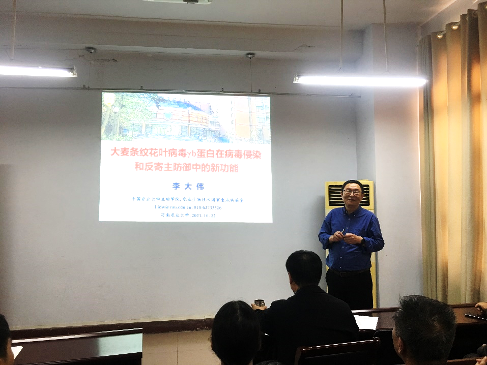 李大伟教授回到母校进行学术交流,并做了题目为“大麦条纹花叶病毒γb蛋白病毒侵染和反寄主防御中的新功能”的学术报告。银河娱乐场