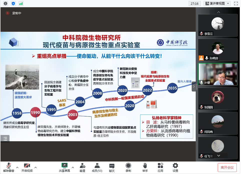 研究生作题为“微生物-作物-昆虫三者互作——植物抗虫媒病机制及其抗病应用”的学术报告。报告采用腾讯会议线上举行,由孙炳剑教授主持,银河娱乐场