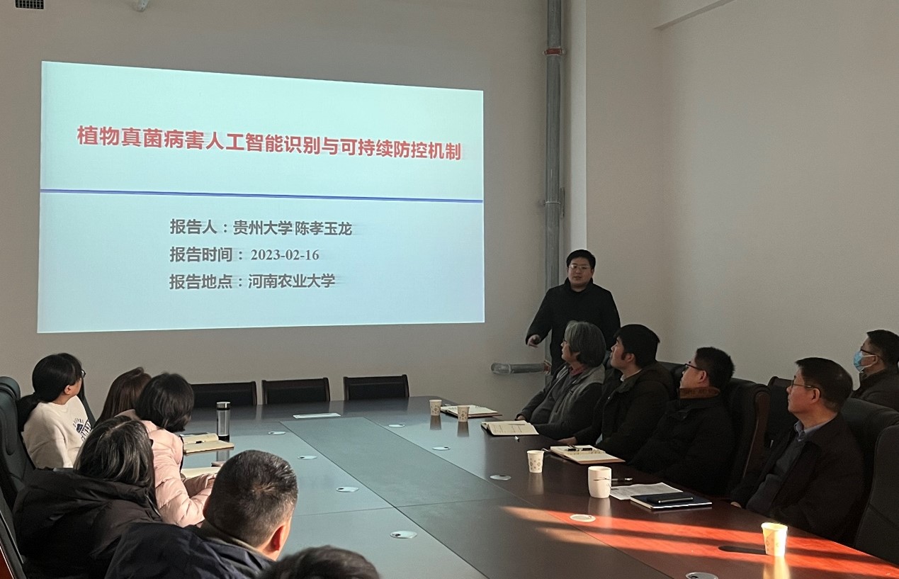 陈孝玉龙分享了团队独创的“T-PEI-IP”教学架构内涵及其实践成果,基于植物真菌病害人工智能识别与可持续防控机制指导大学生开展创新创业活动,成功研发了多个植物真菌病害人工智能识别工具,其作品荣获2022年第24届中国机器人及人工智能大赛全国决赛一等奖、2022年Robcom 机器人开发全国大赛(CAIA 数字创意全国总决赛)二等奖和第十三届“挑战杯”贵州省大学生创业计划竞赛一等奖,为银河娱乐场 青年教师如何从实验室走向课堂、走向人才培养的模式创新以及开展交叉学科研究工作提供可借鉴的经验和指导。陈孝玉龙教授结合自己的科研工作,介绍了近年来团队在植物病害生物防治及生防资源发掘与应用方面的科研进展,从喜马拉雅洋葱、烟草、百香果等山地特色植物中挖掘出多种新型植物内生菌生物防治资源,深度解析了其重要的生防机制。同时,从植物病害三要素的新视角,解析了化学农药等环境因子对植物-微生物组的调控作用机理及其阻控技术。报告结束后,陈孝玉龙与参会教师围绕指导大学生开展创新创业活动、挑战杯竞赛、交叉学科研究选题,以及科研合作等问题进行了深入的探讨。