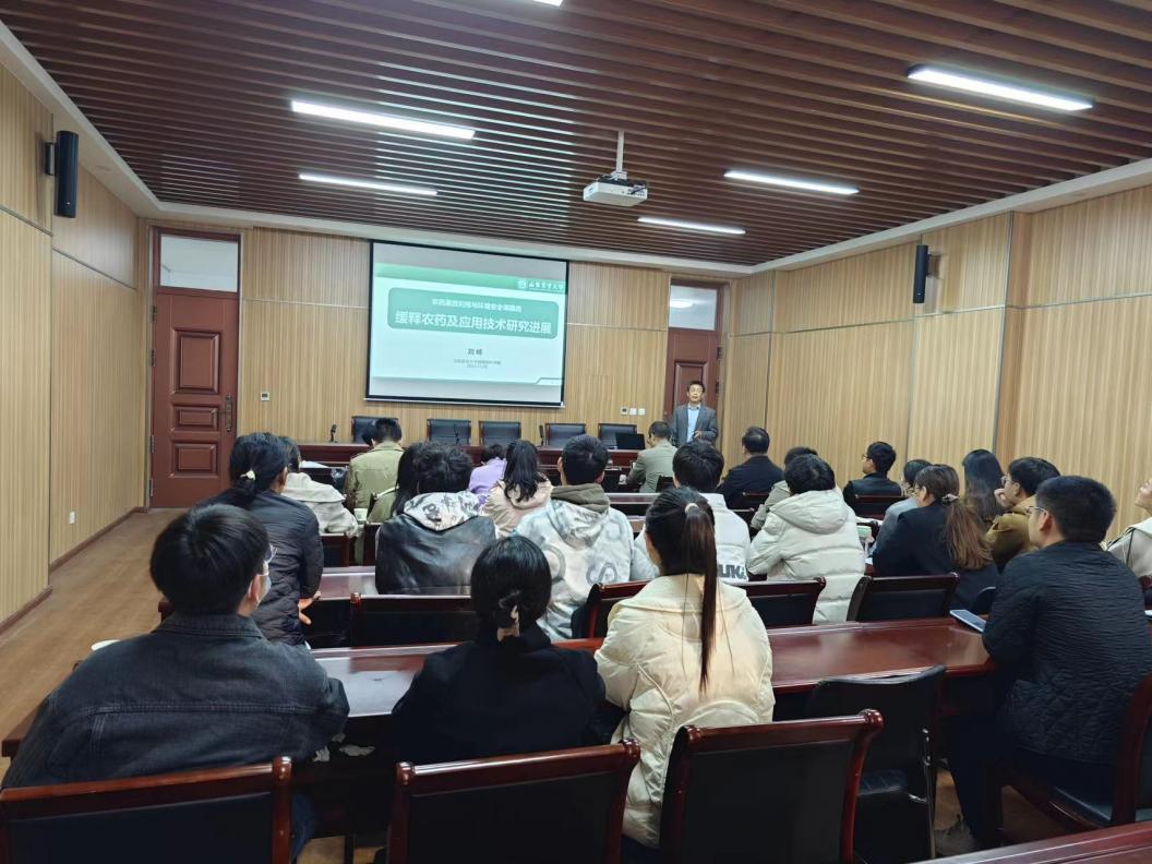 刘峰以“缓释农药及应用技术研究进展”为题,以蔬菜土传病害防控为例,详细阐述了如何从发现问题到解决问题的研究思路,为提高农药利用率、降低要害和毒性等副作用提供了重要的理论指导和借鉴意义。同时指出植保科研人员要密切联系生产,要善于从生产实际中发现问题、解决问题,要把论文写在祖国大地上。刘峰的报告内容丰富,概念新颖,见解独到,让与会师生受益匪浅。