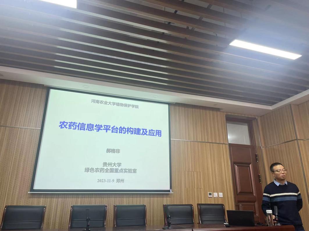 郝格非以“农药信息学平台的构建及应用”为题,指出农药是守护农业生物安全最为经济和有效的手段,但是抗药性目前已成为农业生物安全的重大难题。在传统模式新农药研发效率低的背景下,郝格非团队通过农药信息学方法,开发了可靶性与成药性预测关键技术,构筑了农药信息学平台,引领新农药的创制研发。报告结束后,与会师生就农药信息学平台应用前景同郝格非进行了热烈讨论。与会师生一致认为,郝格非的报告内容精彩纷呈,研究水平高超,应用前景广阔,在新农药创制方面有重要的应用价值。