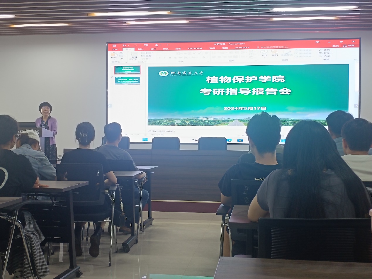 燕飞研究员精心准备了本科生考研指导,并为我们详细介绍了宁波城市历史和风貌,对宁波大学的总体情况进行了细致讲解。宁波大学作为国家“双一流”建设高校,有1个省部共建“农产品质量安全危害因子与风险防控”国家重点实验室,9个一级学科博士点,31个一级学科硕士点,27个专业学位硕士点,12个世界学术机构ESI前1%学科,7个“十三五”入选省一流A类学科。燕飞研究员对宁波大学植物病毒学研究所做了重点介绍,研究所有四个研究中心,分别为植物病毒研究中心,媒介昆虫研究中心,土壤环境质量控制研究中心和生物信息研究中心。植物病毒研究中心主要研究方向有病毒与寄主互作、病虫与植物免疫和小麦病毒病害与绿色防控。宁波大学植物病毒学研究所围绕病毒-昆虫-植物-环境多元互作,组建了8个不同的研究团队。燕飞研究员对各个团队情况及研究方向进行了细致介绍。随后,燕飞研究员对宁波大学植物病毒学研究所的研究生招生和培养情况进行了展示。燕飞研究员的报告对银河娱乐场