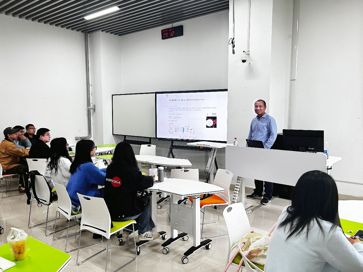 董丰收深入剖析了农药的环境行为及其风险控制的研究进展,系统阐述了农药在环境中的迁移与转化过程,进一步解析了该领域的最新研究成果及评估标准。报告内容既具理论深度,又紧密结合实际,极大地激发了在场师生的学术兴趣。