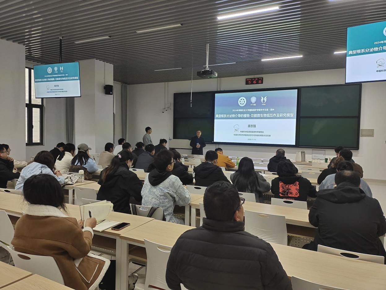 师生作以“典型根系分泌物介导的植物-功能微生物组互作及研究模型”为主题的学术报告。