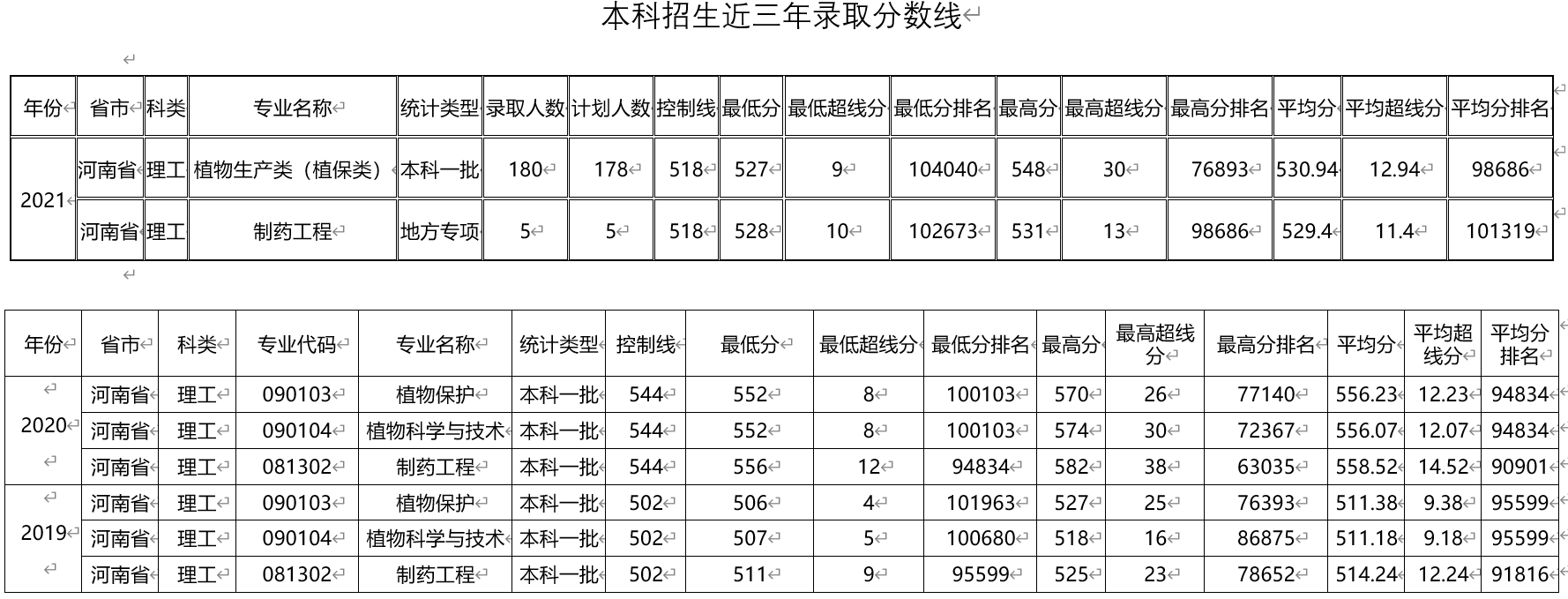 本科招生近三年录取分数线