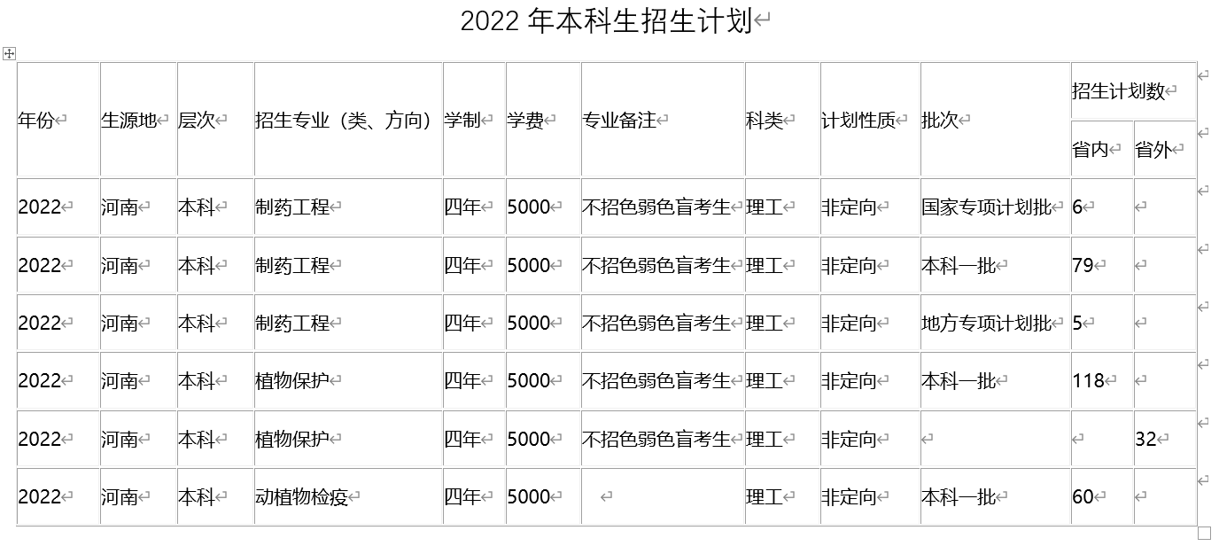 2022年本科招生计划