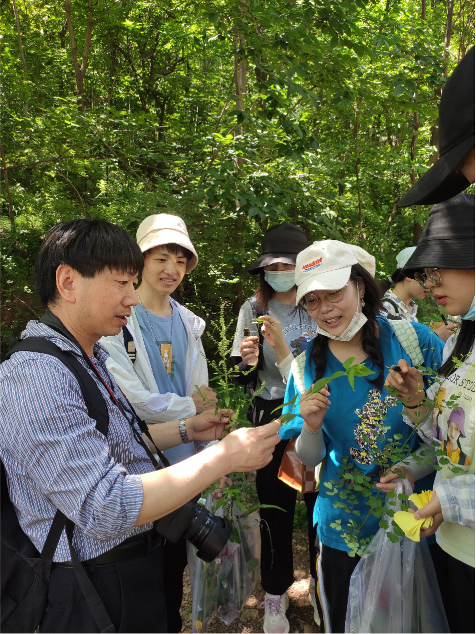 ,,2021年6月5日,天气晴朗,微风习习,2018级植物科学与技术专业52名本科生在实习指导老师王红卫、白润娥、燕敬利、孙华越的带领下,赴郑州市新密凤凰山实习基地开展了《植物资源学》的课程实习活动。