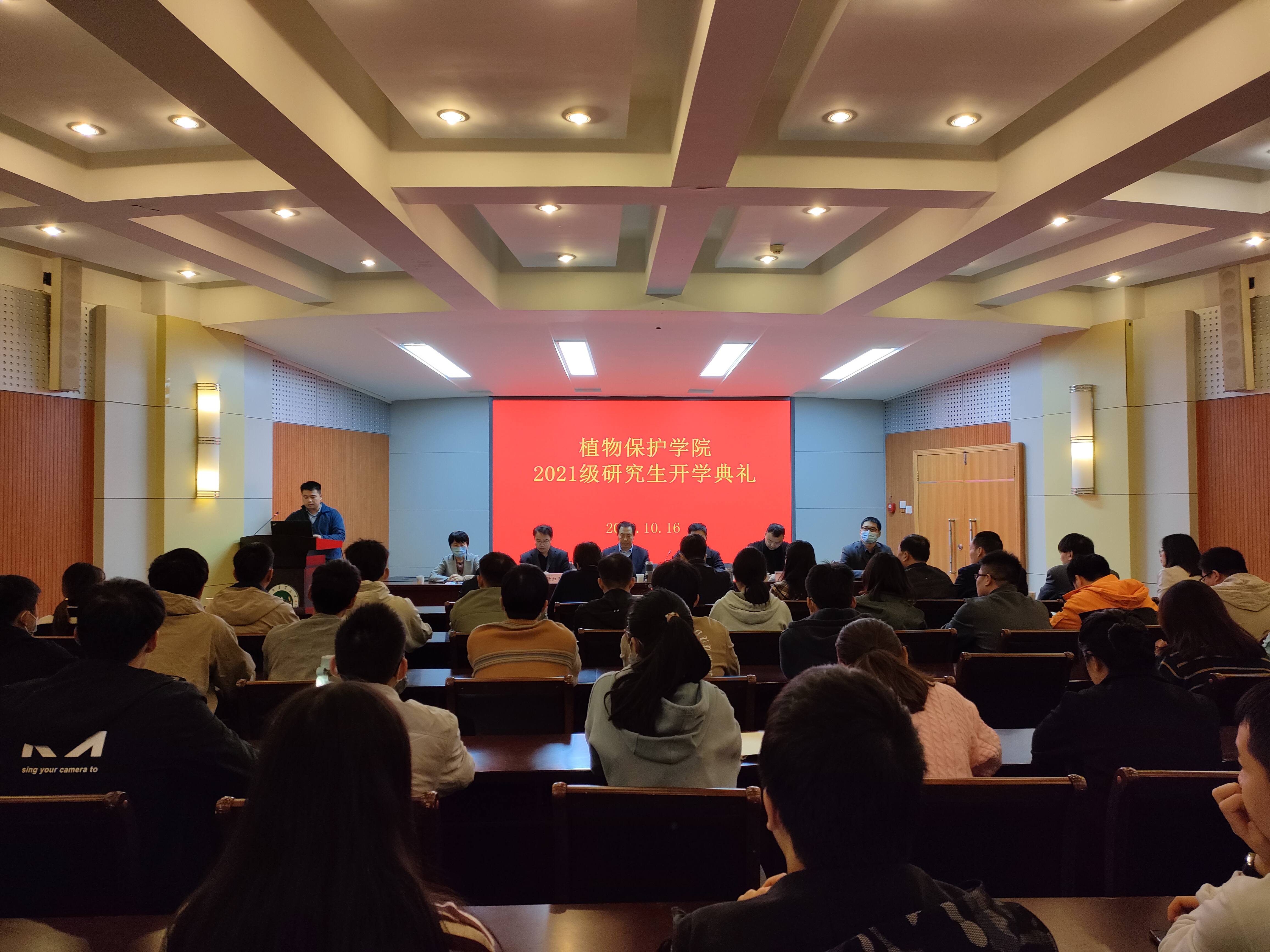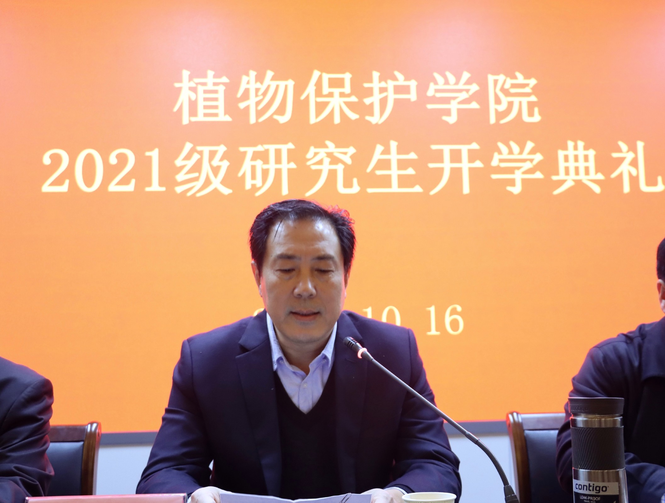 王聪珂作为学生代表发言向领导老师致以敬意感谢。她说无论严寒酷暑都不能阻挡我们学习的脚步,要努力学习、刻苦钻研,成长为有知识有担当的青年,展现植保学子的风采。