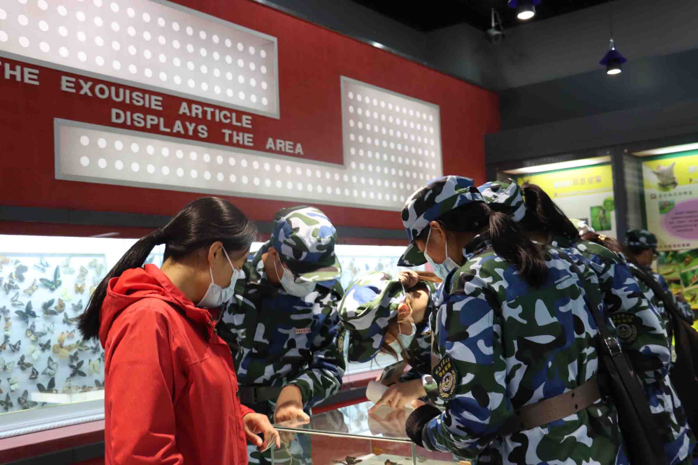 同学们观赏昆虫标本