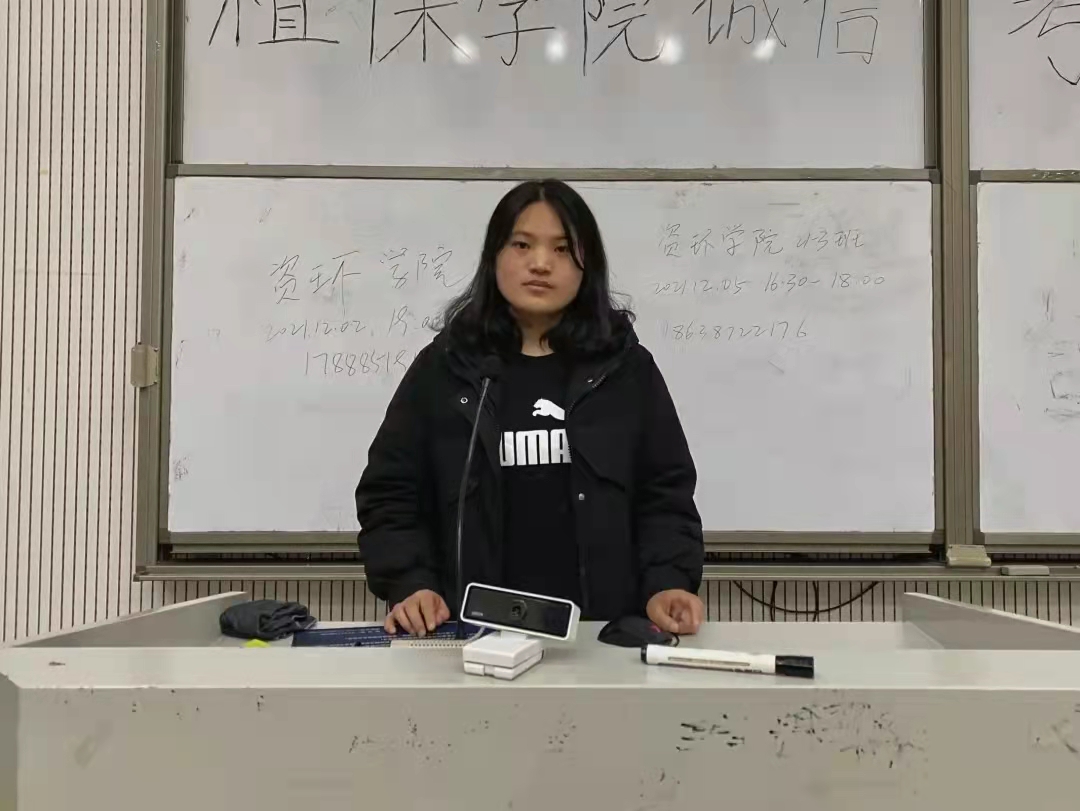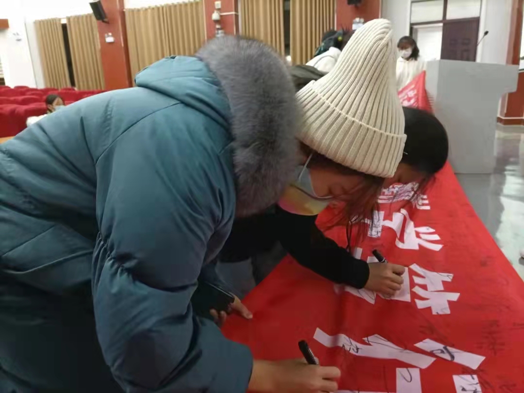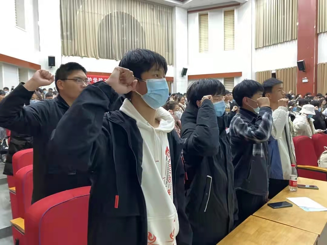 田甜甜向大家介绍此次大会的重要性,挂科的严重性以及往届各班的挂科人数、挂科率,让同学们对考试挂科、考试作弊的后果有了详细的认知。王赟飞在会议中为21级同学提出了三点要求:一是严肃考风考纪,诚信考试。他指出诚信乃立身之本,在校生应当做到在考场诚信考试,遵守校纪。二是认真复习,积极备考。考试是对大家前段时间学习成果的检测,同学们要积极准备,高度重视。三是面对考试,同学们要注意劳逸结合,保持良好的心理状态,合理安排饮食,适当进行户外活动。会议最后,由李蕊蕊同学带领大家庄严宣誓。