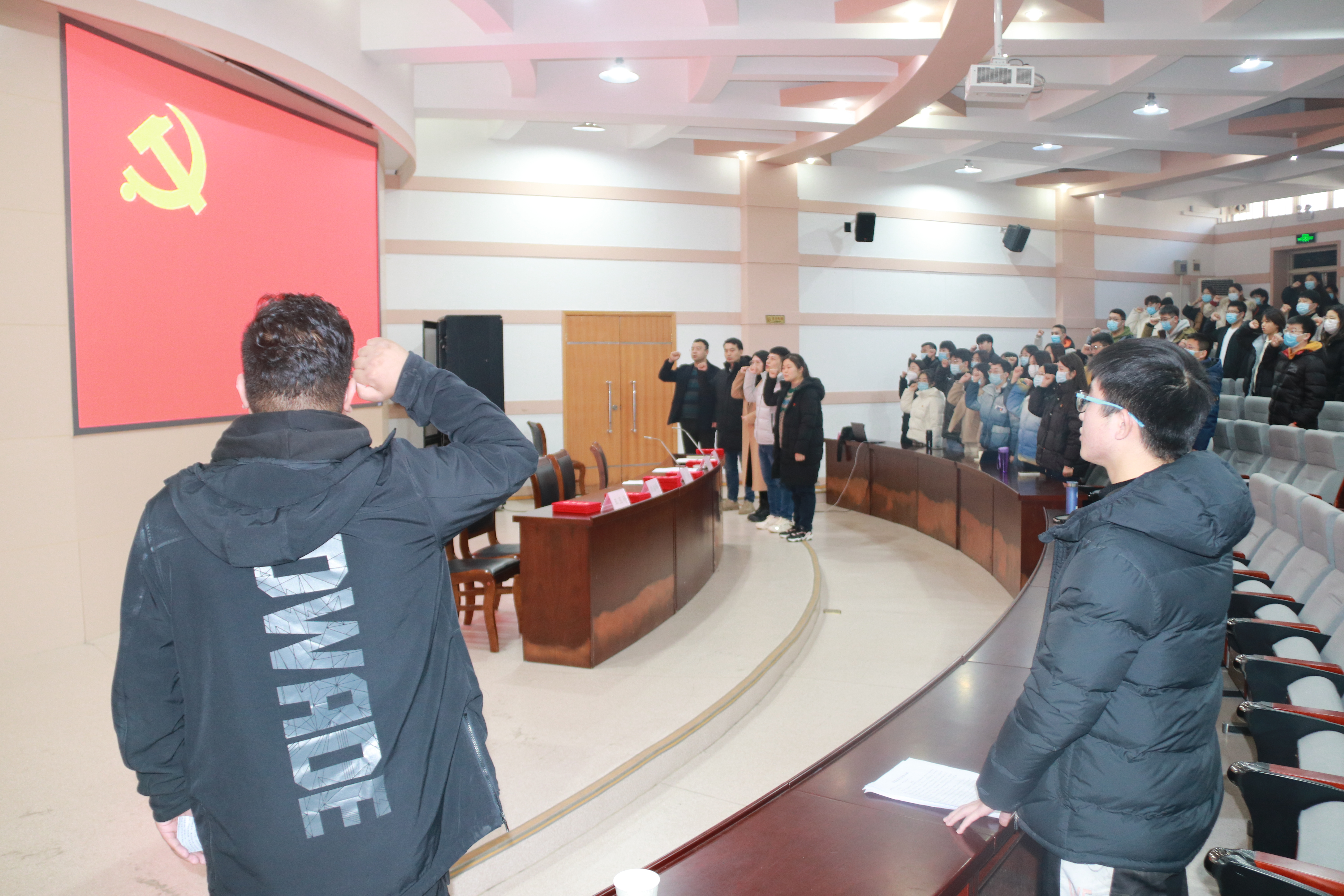 在文化路校区300人报告厅举行新进党员宣誓暨优秀党员表彰大会。院党委副书记鲁兴、院团委老师出席会议,银河娱乐场