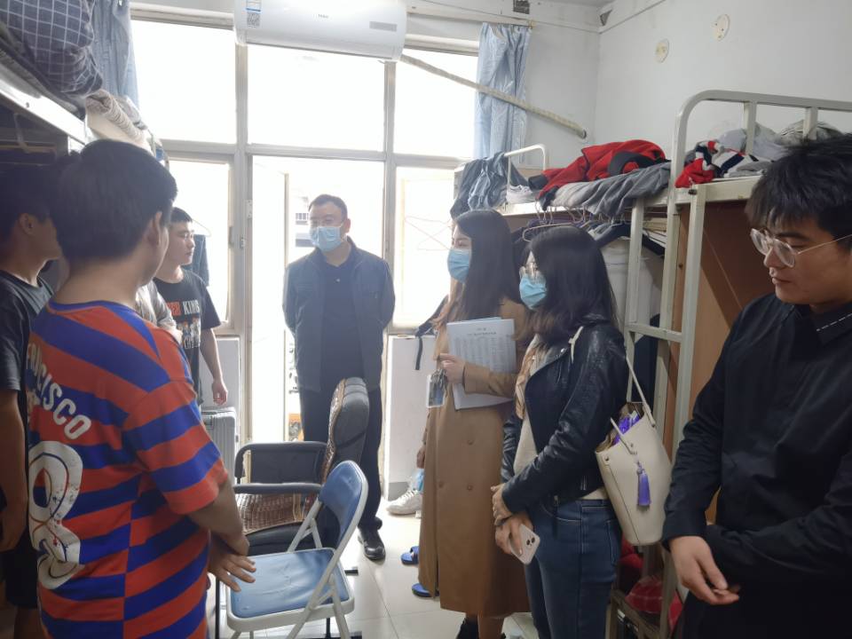 院领导和团委老师检查学生宿舍