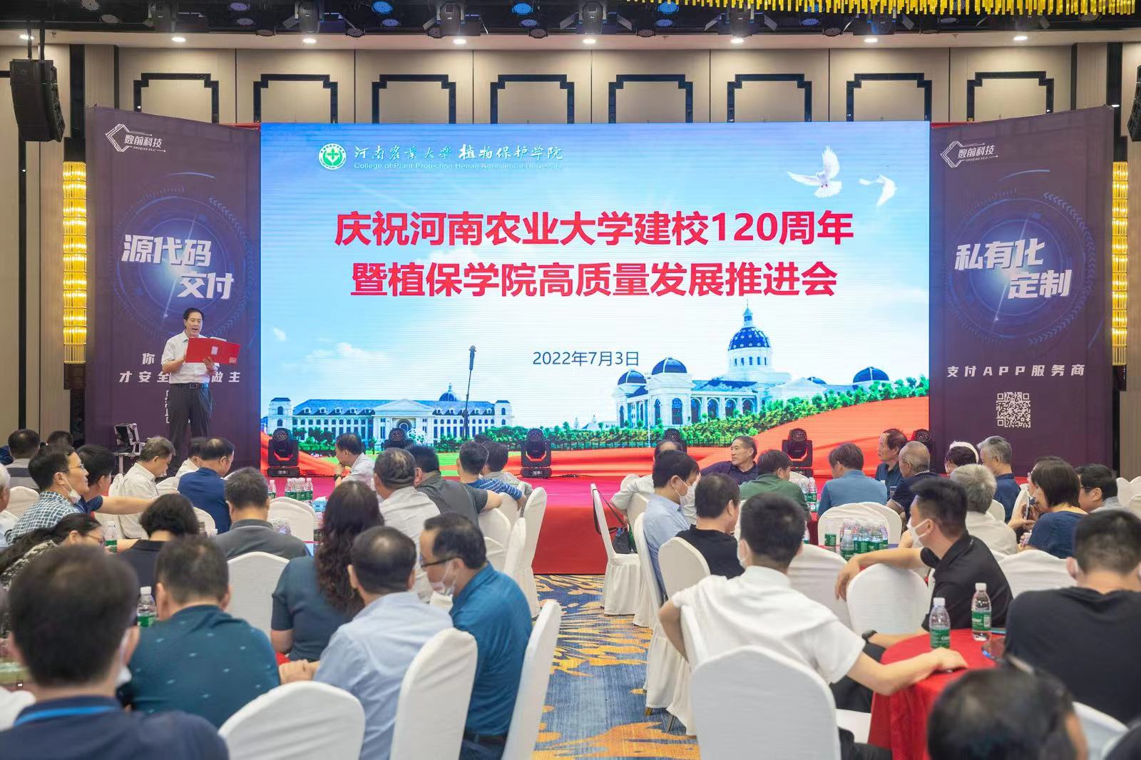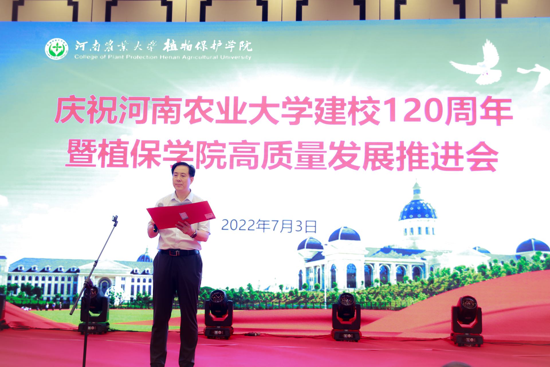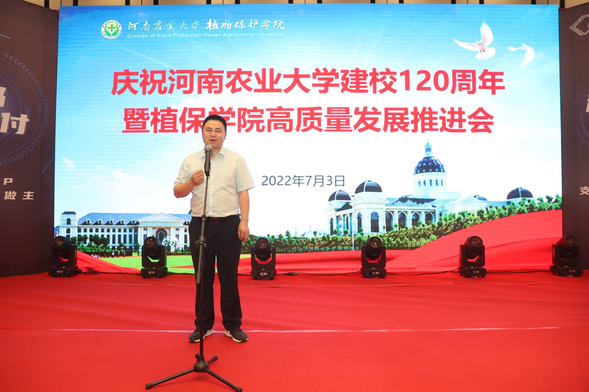 近年在师资队伍建设、人才培养、科技创新、社会服务、对外合作等方面取得的成就。他指出一代代植保人砥砺奋进,薪火相传,秉承了“严谨治学、求实创新”的优良传统,确立了“立足农业、服务河南、面向全国、走向世界”的办学定位,形成了“团结奋进、求实创新、爱岗敬业、乐于奉献”的良好院风。近百年的办学历程中培养了一批又一批优秀的植保学子,在社会不同领域发挥了重要作用。银河娱乐场