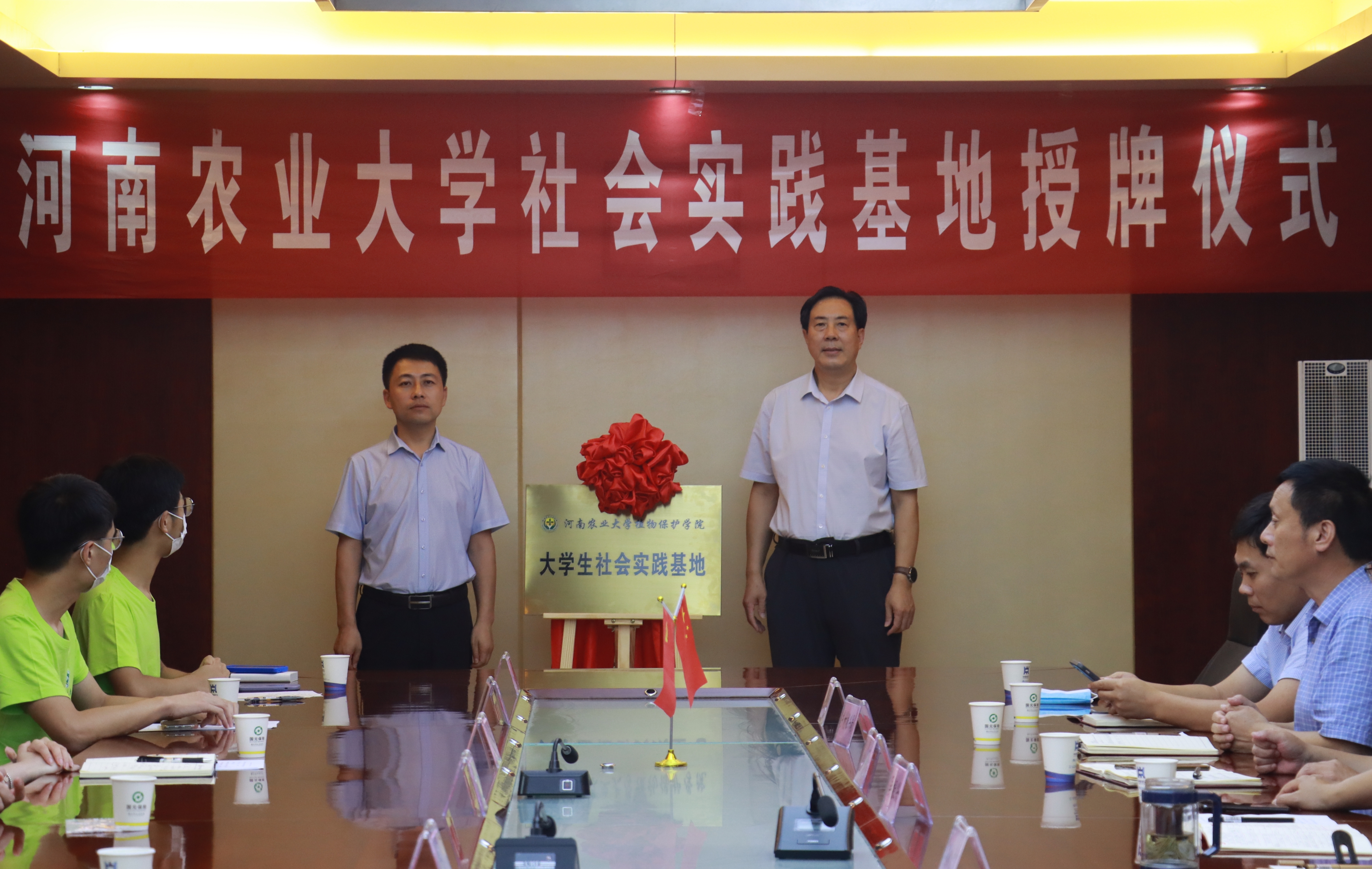 大学生社会实践基地揭牌仪式在虞城县行政中心举行。院党委书记张留占、郭线茹教授、副书记鲁兴、团委副书记甄珍、辅导员王赟飞,虞城县县长孙虎、农业农村局党组书记蒋卫东、副县长吴振兴,政府办、农业农村局、乡村振兴局、农科所负责人和银河娱乐场