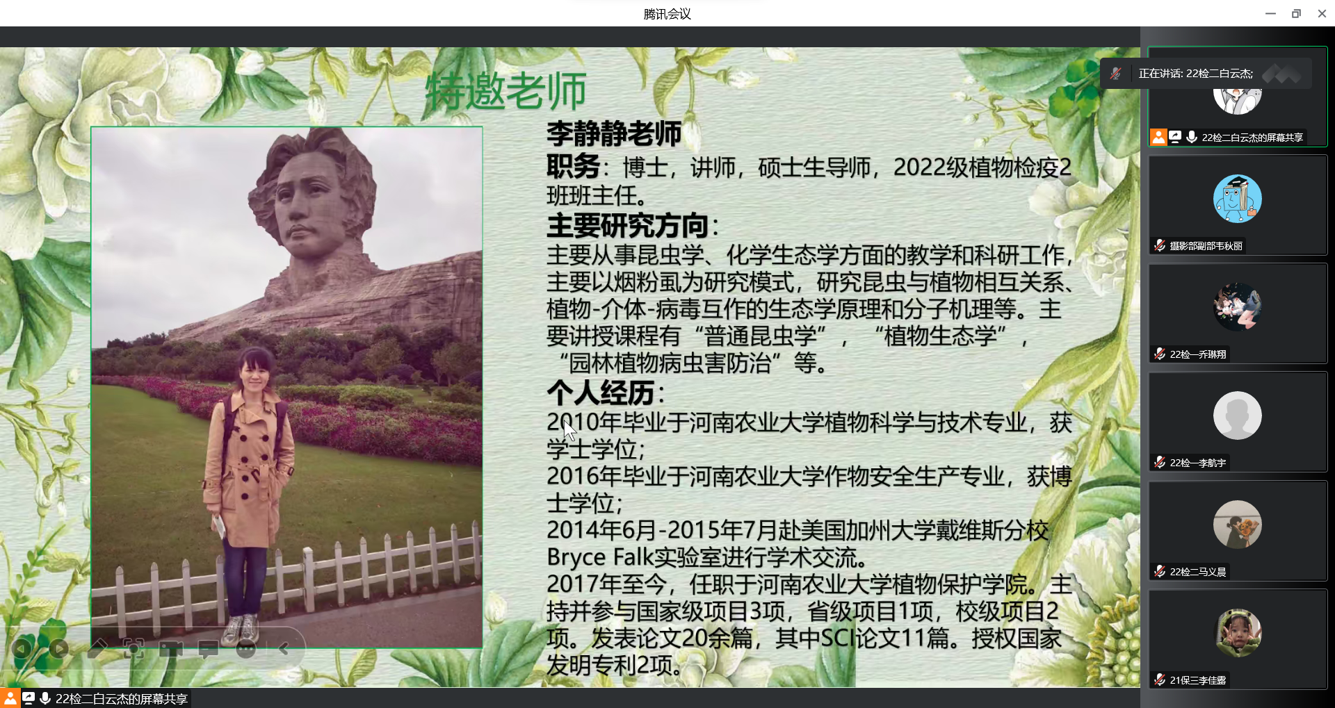 此次学业指导面对不同专业学生,分植保、植检、制药3个分会场进行。会上,青年教师向同学们介绍自己的求学之路,分享求学心得体会。