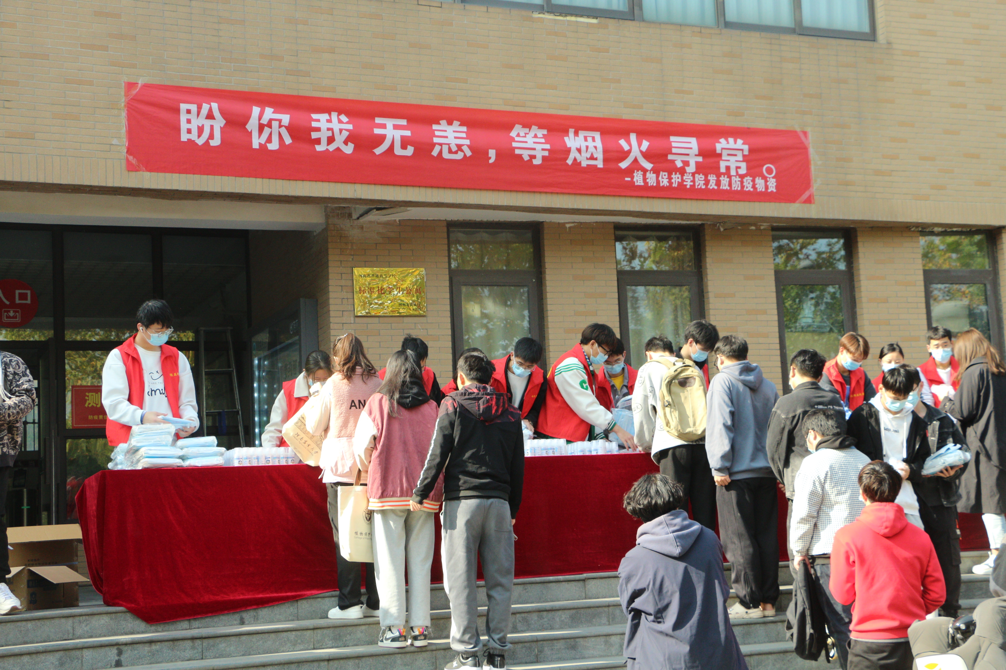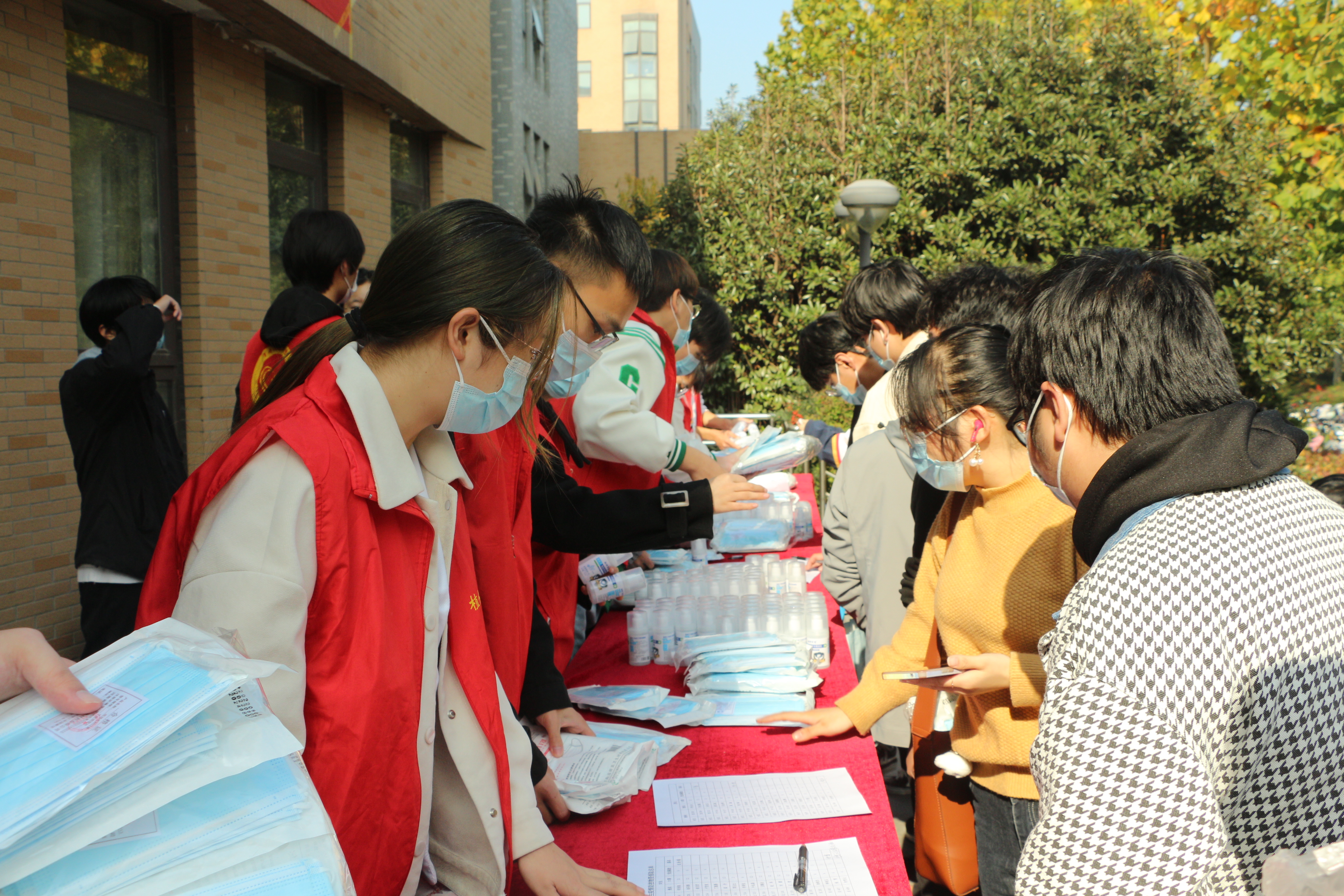 于11月17日上午,辅导员王赟飞带领学生干部在龙子湖校区桂花园开展防疫物资发放活动。