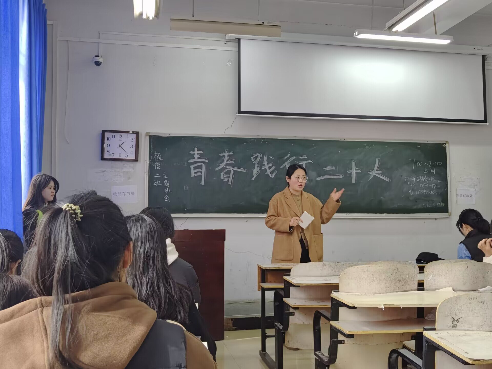 学生班召开了以“青春践行二十大”为主题的班会活动,各班主任结合专业特色和学生实际,叮嘱学生要提高思想政治素质,坚定理想信念;筑牢安全防线,共建平安校园;加强学风建设,助力学生成长成才。教育引导学生:一要情系祖国,奉献青春。要心怀感恩,胸怀大志,厚植家国情怀,立志做有理想、敢担当、能吃苦、肯奋斗的新时代好青年。二是要培养健康身心,塑造完美人格。同学们要加强体育锻炼,历练健全的人格,满怀信心激情,成长为德智体美劳全面发展的新时代大学生。三是要脚踏实地,笃行实干。作为新时代青年,要珍惜青春韶华,追逐梦想,加强理论学习,锻造强大本领,努力成为建设社会主义现代化强国的高素质人才