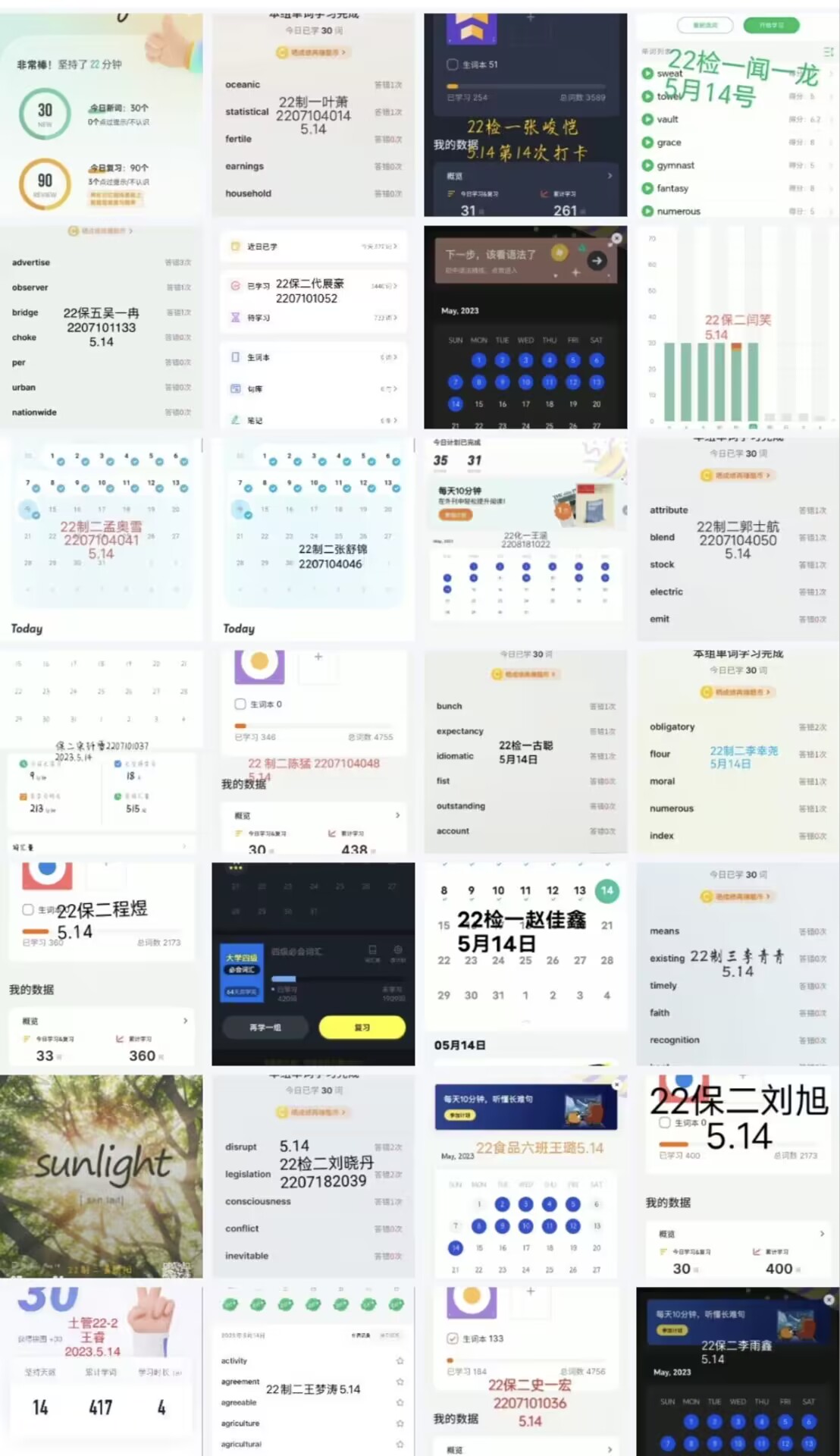 英语爱好者协会举办“Celebrate May Day and never forget English”为主题的英语单词打卡活动,该活动以线上截图打卡的形式开展。