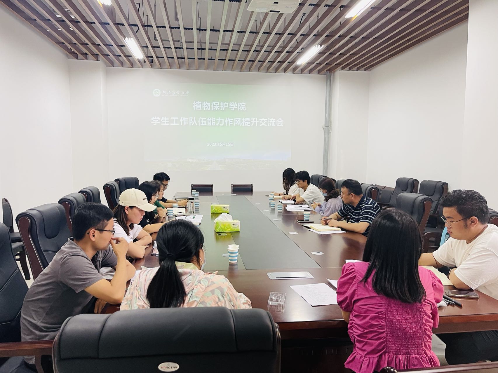 于第二实验楼中209会议室召开学生工作队伍能力转作风提升交流会。院党委书记李兴道、副书记鲁兴、专兼职辅导员及学生干部代表参加会议。