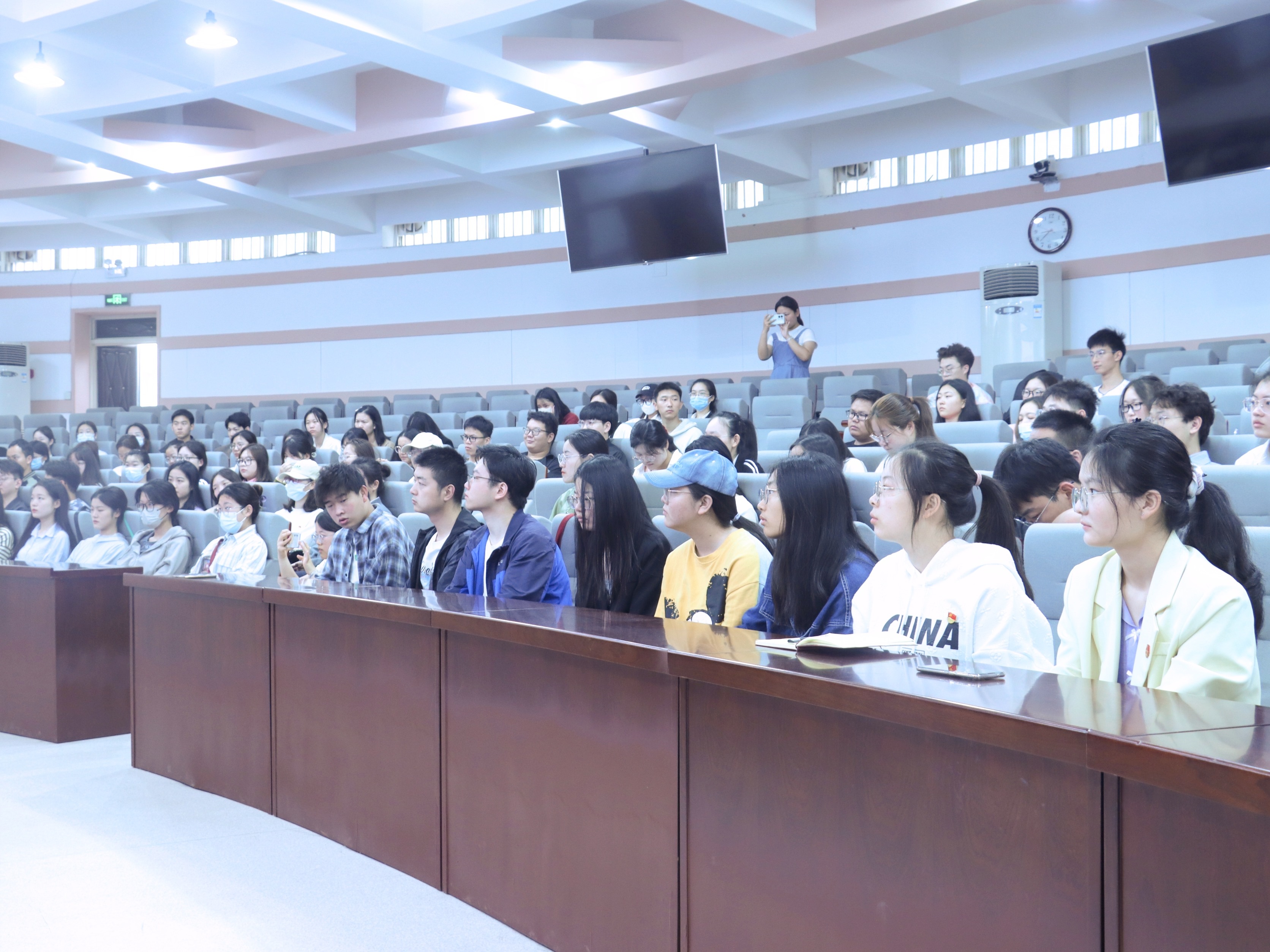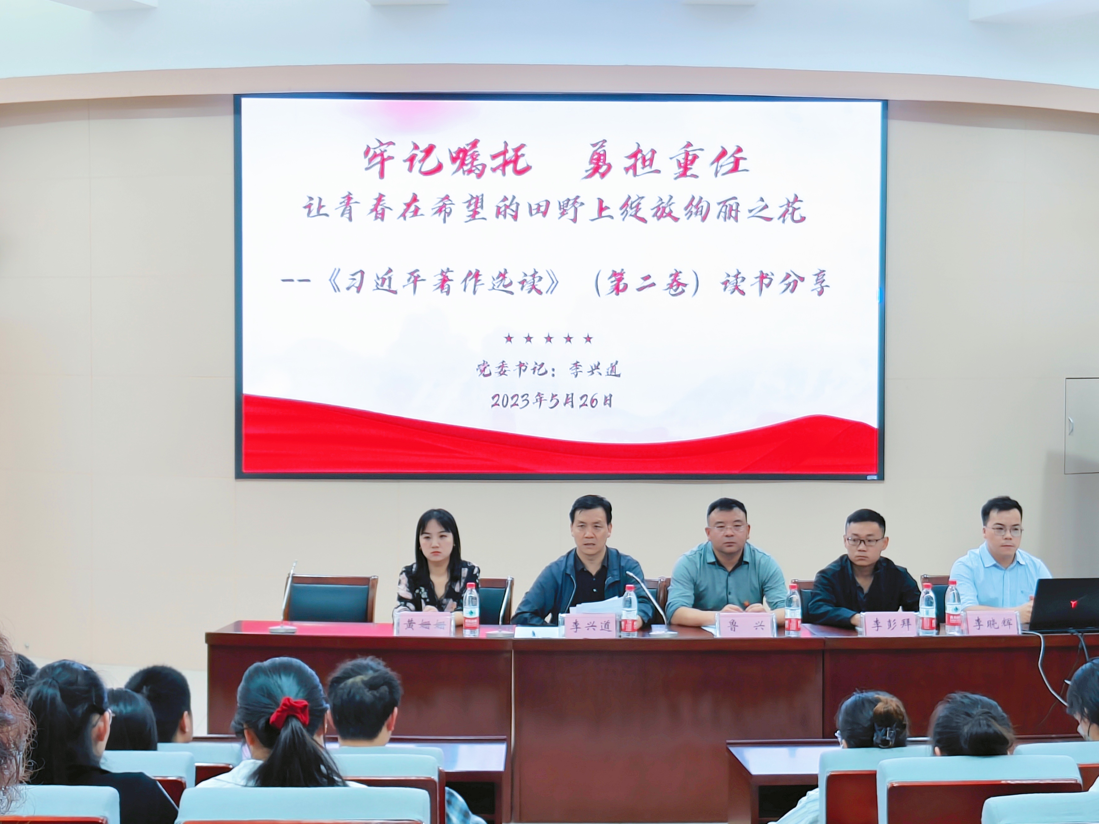 于文化路校区300人大礼堂举办以“牢记嘱托,勇担重任”为主题的毕业生党员读书分享会。党委书记李兴道、党委副书记鲁兴、团委老师及全体2023届毕业生党员参加会议。