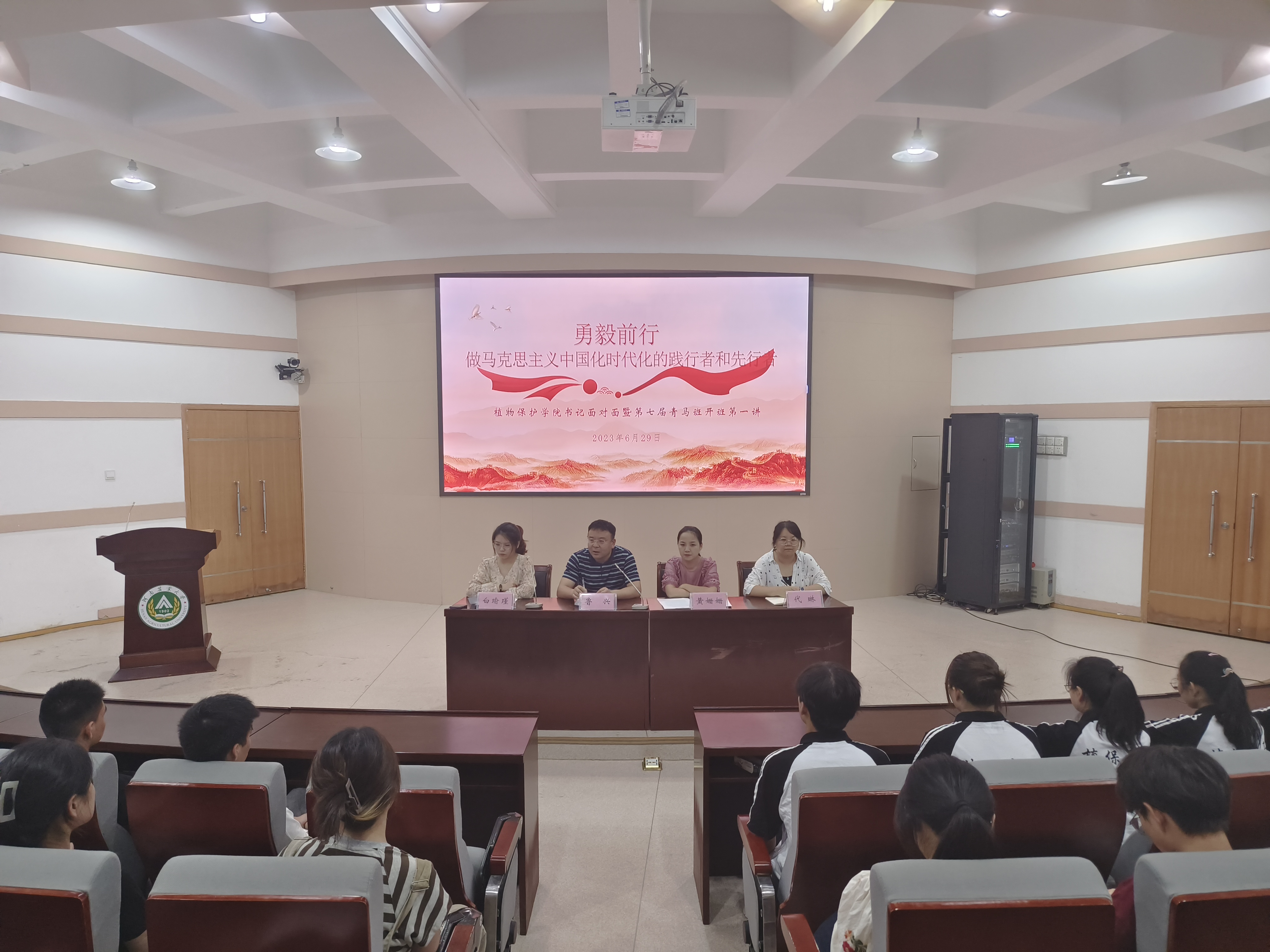 于三百人报告厅举行院第七届青马班开班仪式。院党委副书记鲁兴、团委书记黄姗姗、团委副书记白瑜瑾及第七届青马班学员参加仪式。