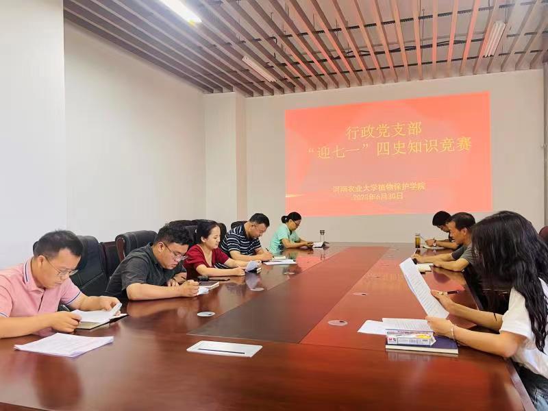 行政党支部于龙子湖校区第二实验楼2中209会议室举办迎“七一”四史知识竞赛。院行政支部全体党员参加知识竞赛。