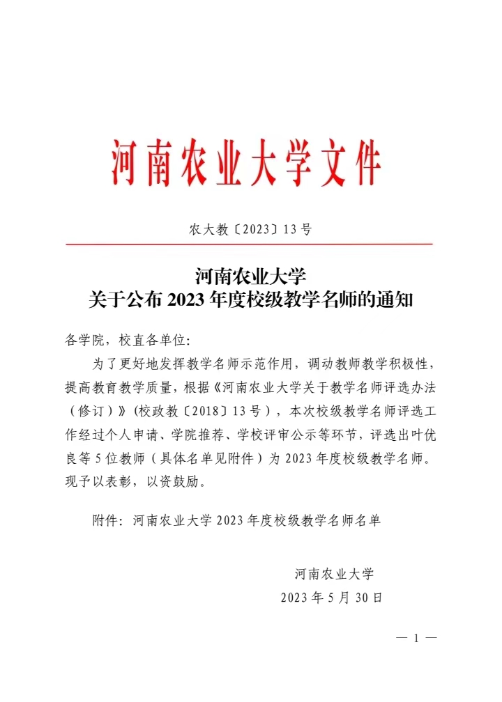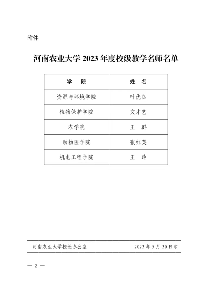 2023年度校级教学名师”。