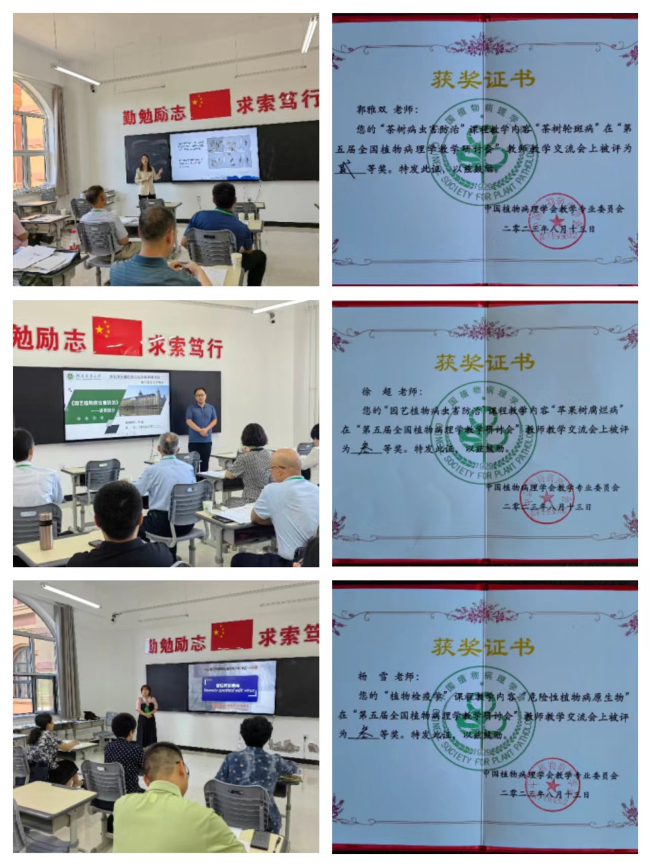 植物病理系文才艺教授等6名教师参会。会议期间,参会教师聆听了植物病理学领域全国教学名师、国家一流课程主持人、国家教学成果二等奖主持人、教育部农艺类教学指导委员会副主任等专家在学科(专业)建设、教育教学改革与实践、一流课程建设与实践等方面的专题报告,并与兄弟院校植物病理学教学骨干教师进行了交流与探讨。