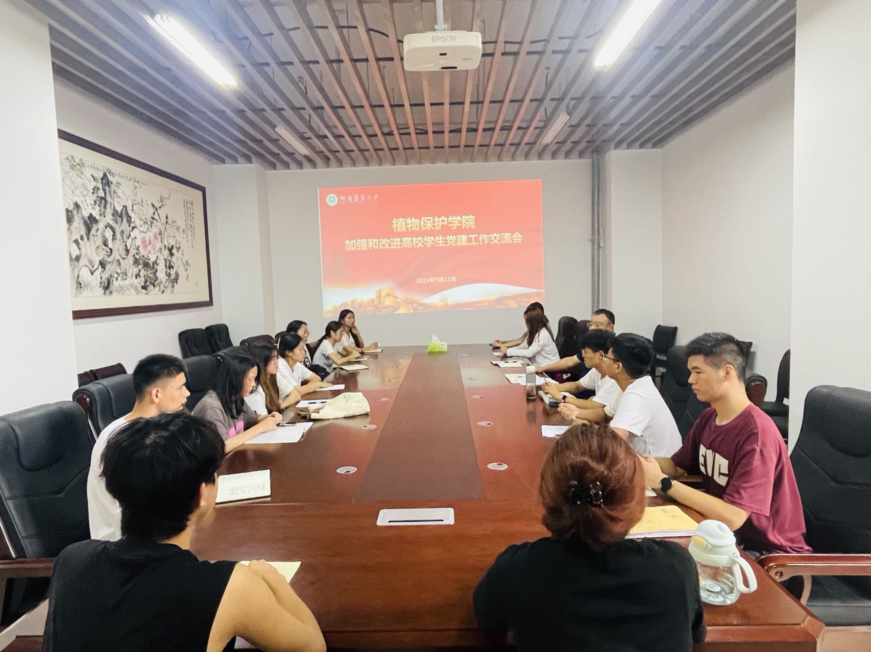 于第二实验楼2中209会议室召开加强和改进高校学生党建工作交流会。院党委副书记鲁兴及院组织部全体学生干部参加交流会,会议由组织员李晓辉主持。