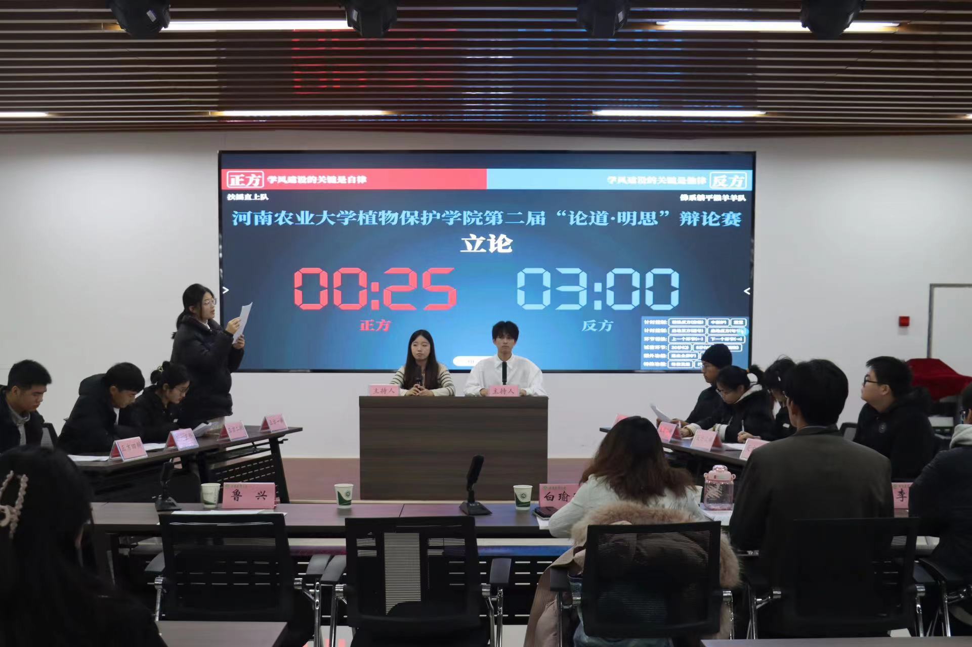 第二届“论道·明思”学风辩论赛决赛于龙子湖校区第二实验楼六楼植保活动中心顺利落下帷幕。院党委书记李兴道、院党委副书记鲁兴、院团委副书记白瑜瑾以及教师代表担任本次比赛评委。