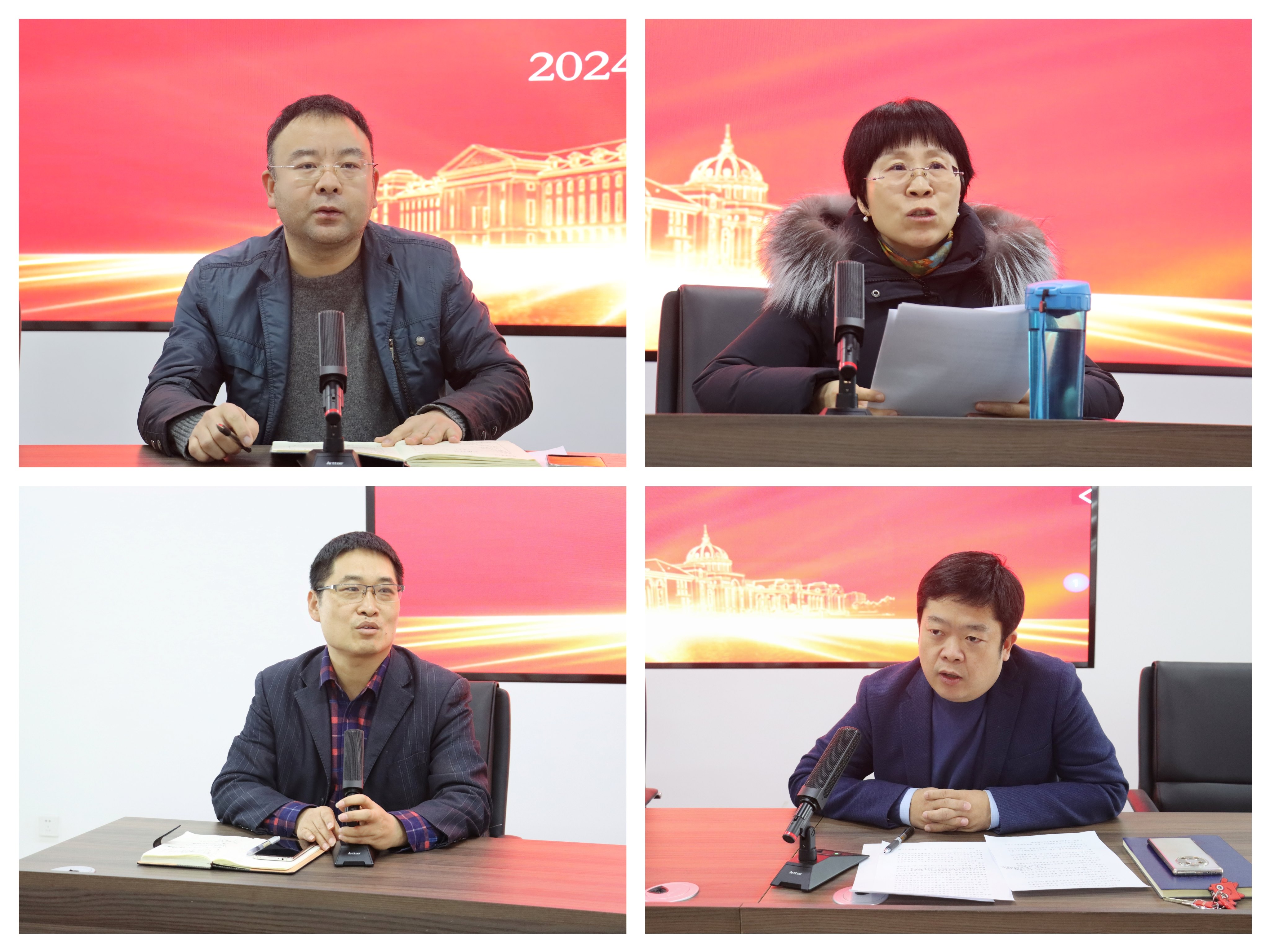 班子成员从党建、学生工作、教育教学、科研学科、管理服务等方面回顾了2023年取得的成绩和突破,对近期的工作进行了强调。