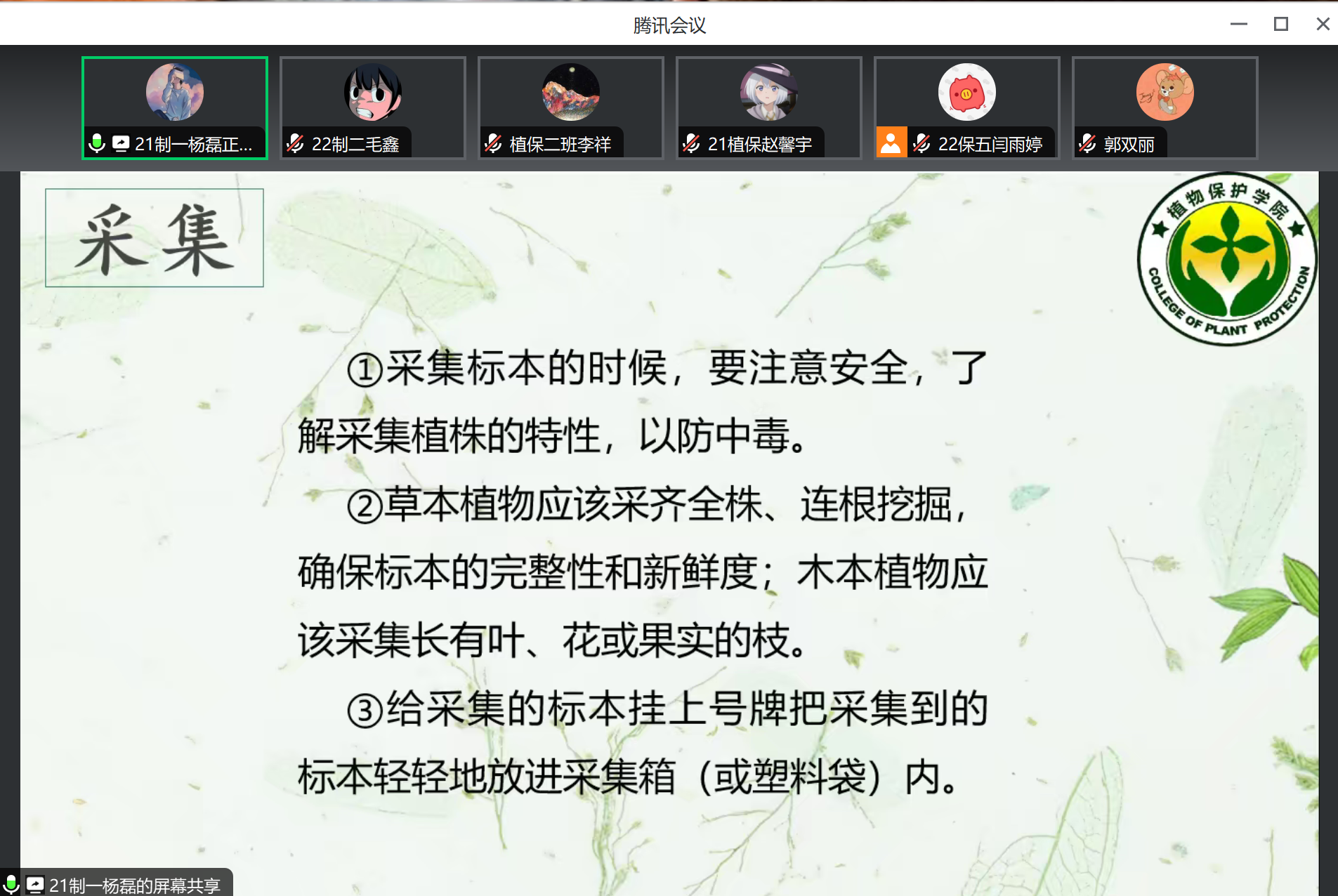 培训会上,往届优秀作品的学生代表们分别从植物标本类作品的制作、摄影类作品的拍摄思路和技巧、绘画类作品中点线图的制作、工艺品创意类作品的制作和微景观类作品的制作五个方面来分享相关作品的制作思路和参赛经验,鼓励同学们积极参与此次学科竞赛,做到细心观察,秉持创新理念,呈现出更加优秀的作品,同时巩固自身专业知识。