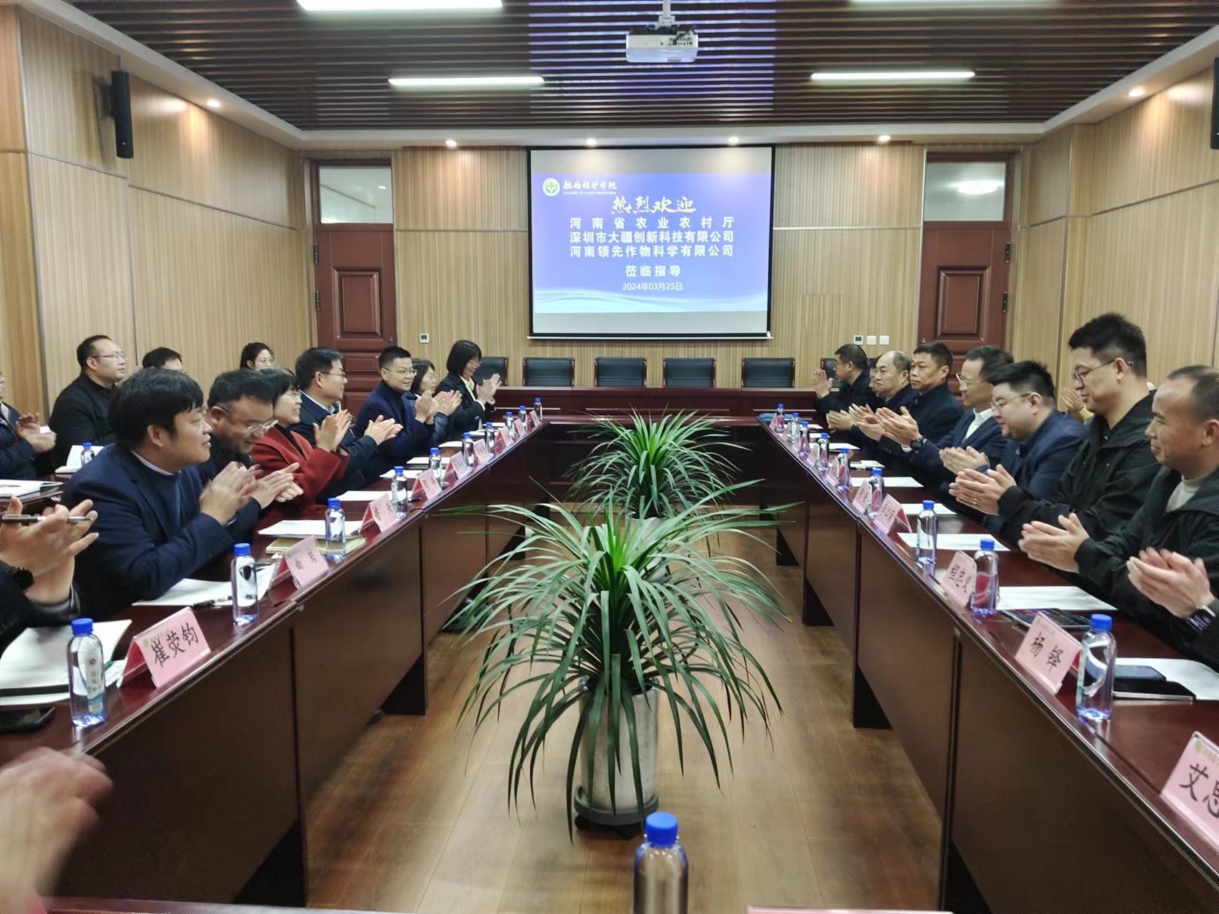 植保所所长封洪强、深圳大疆创新科技有限公司全球销售总监张源和河南领先作物科学有限公司董事长李臣堂等一行十余人来银河娱乐场