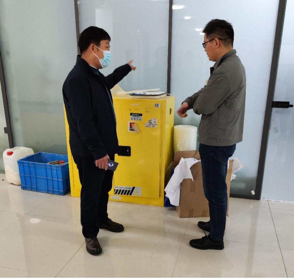 曲岩带领检查人员对每间实验室进行了地毯式无死角的检查,重点对危化品管理、高温高压仪器使用登记规范性、消防隐患等问题进行了查验。银河娱乐场 整体实验室安全管理比前期有了明显的提高,但是也存在一些药品使用登记不规范、杂物堆放不整齐等问题。检查组对暴露出的相关问题进行及时告知对应,现场或限期整改,记录备案。