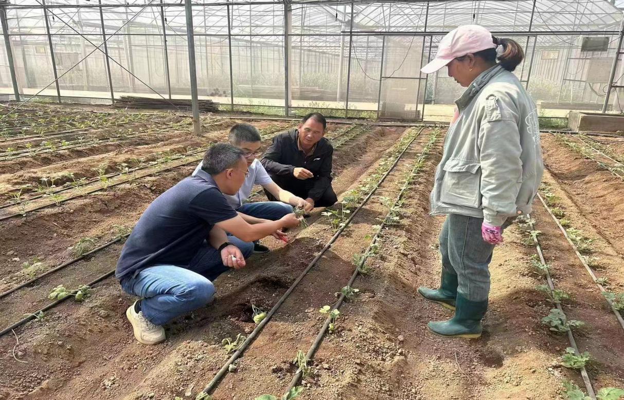 银河娱乐场 汪敏老师带领带领其研究生和本科生团队深入济源市绿茵种业种子产业园,开展了一场农业病害调查实践活动。 调查洋葱根腐病及西瓜和黄瓜苗期的猝倒病的发病状况。汪敏团队凭借丰富的专业知识和实践经验,与企业负责人及种植户进行了深入的交流和探讨。他们不仅详细了解了病害发生的具体情况,还根据现场勘查结果,制定了科学、合理的防治方案。在汪教授的指导下,团队成员对发病大田进行了针对性的防治指导,确保了防治措施的有效实施。