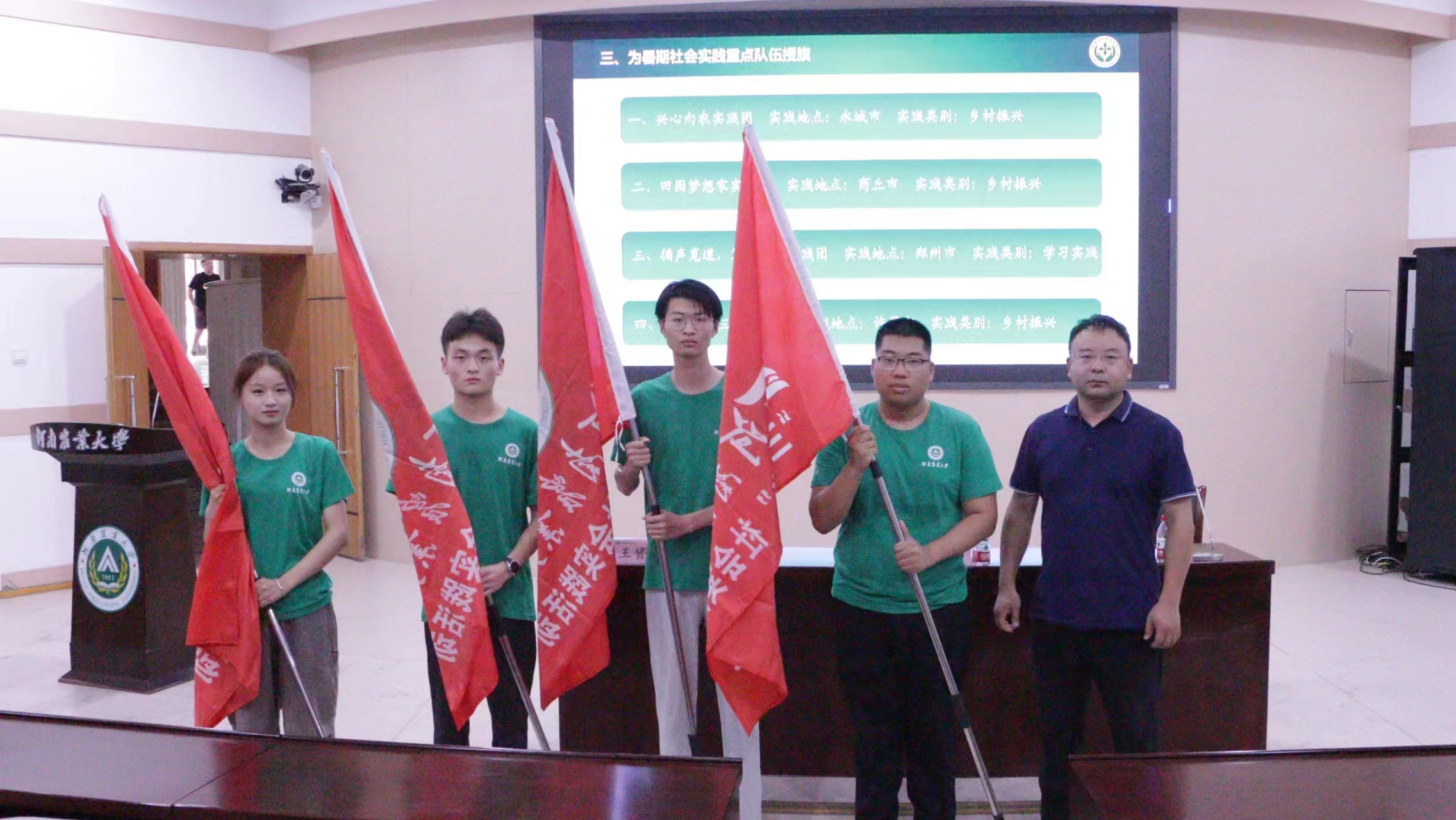 鲁兴、马庆周为2024年暑期社会实践重点队伍授旗,寄希望植保学子肩负重任,将继续在盛夏时分投身基层、服务社会,在生动的社会实践中受教育、长才干、作贡献、展风采。