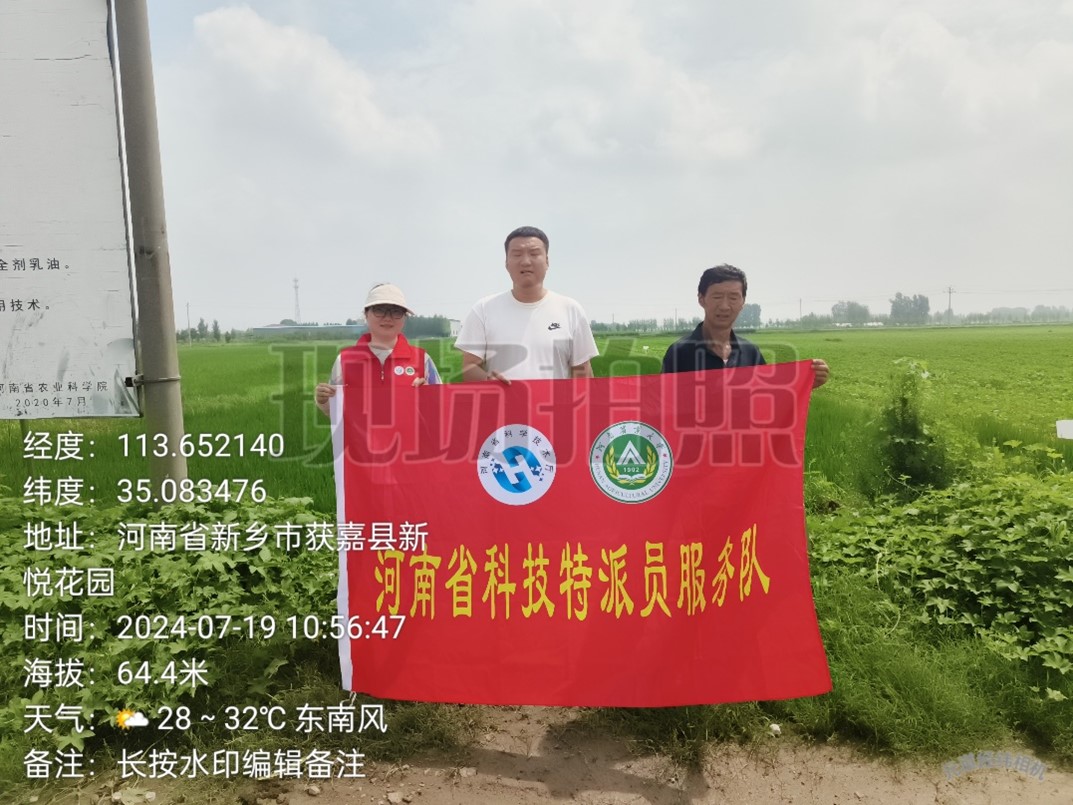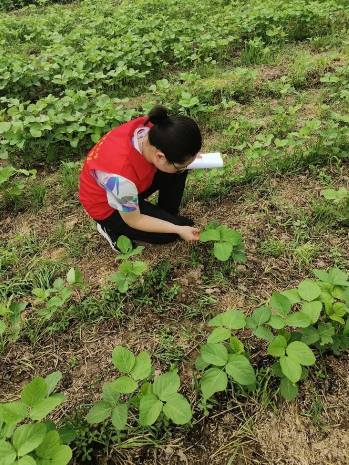 林榕梅、程川博等人组成的科技特派员服务队前往获嘉县冯庄村在合作社负责人和农户的陪同下,实地考察了100余亩大豆玉米复合种植区,利用现代科技手段,开展病虫害防治工作。