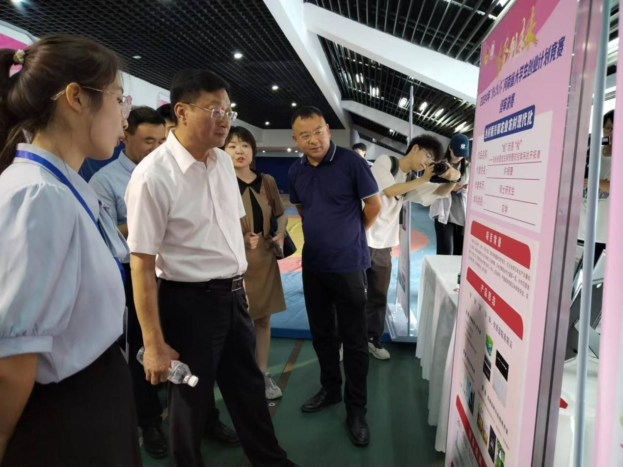 校党委副书记何松林,校团委书记贾云飞、副书记雷雯,院党委副书记鲁兴与项目团队成员竞赛现场合影
