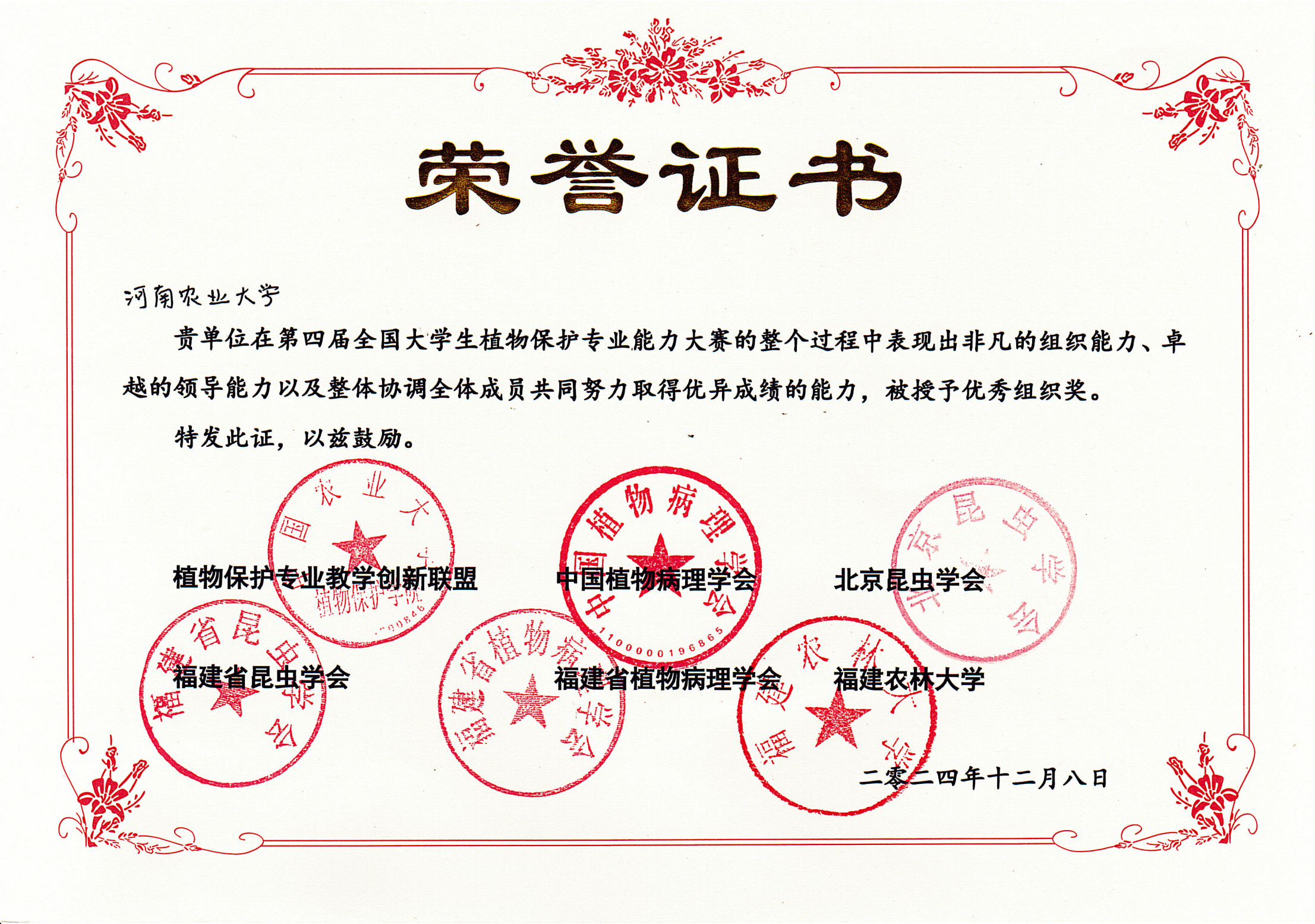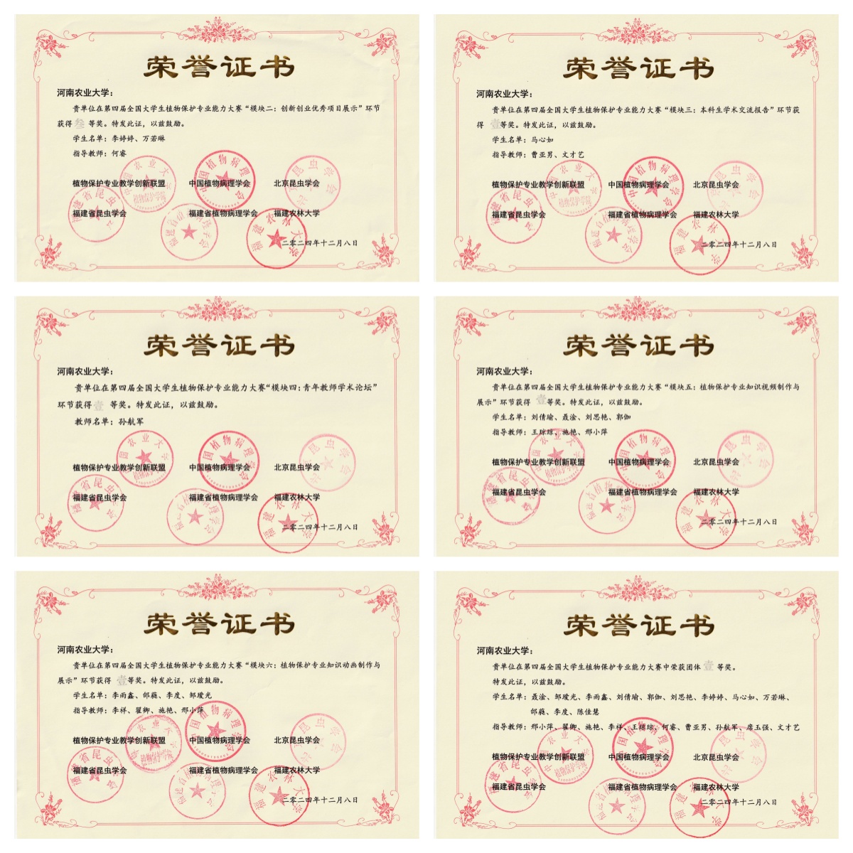 本网讯(通讯员 黄姗姗 图片 李祥)12月8日,第四届全国大学生植物保护专业能力大赛在福建农林大学圆满落幕。大赛共设6个模块9个单项的比赛,来自全国43所涉农高校的45支代表队参加了本次大赛。银河娱乐场