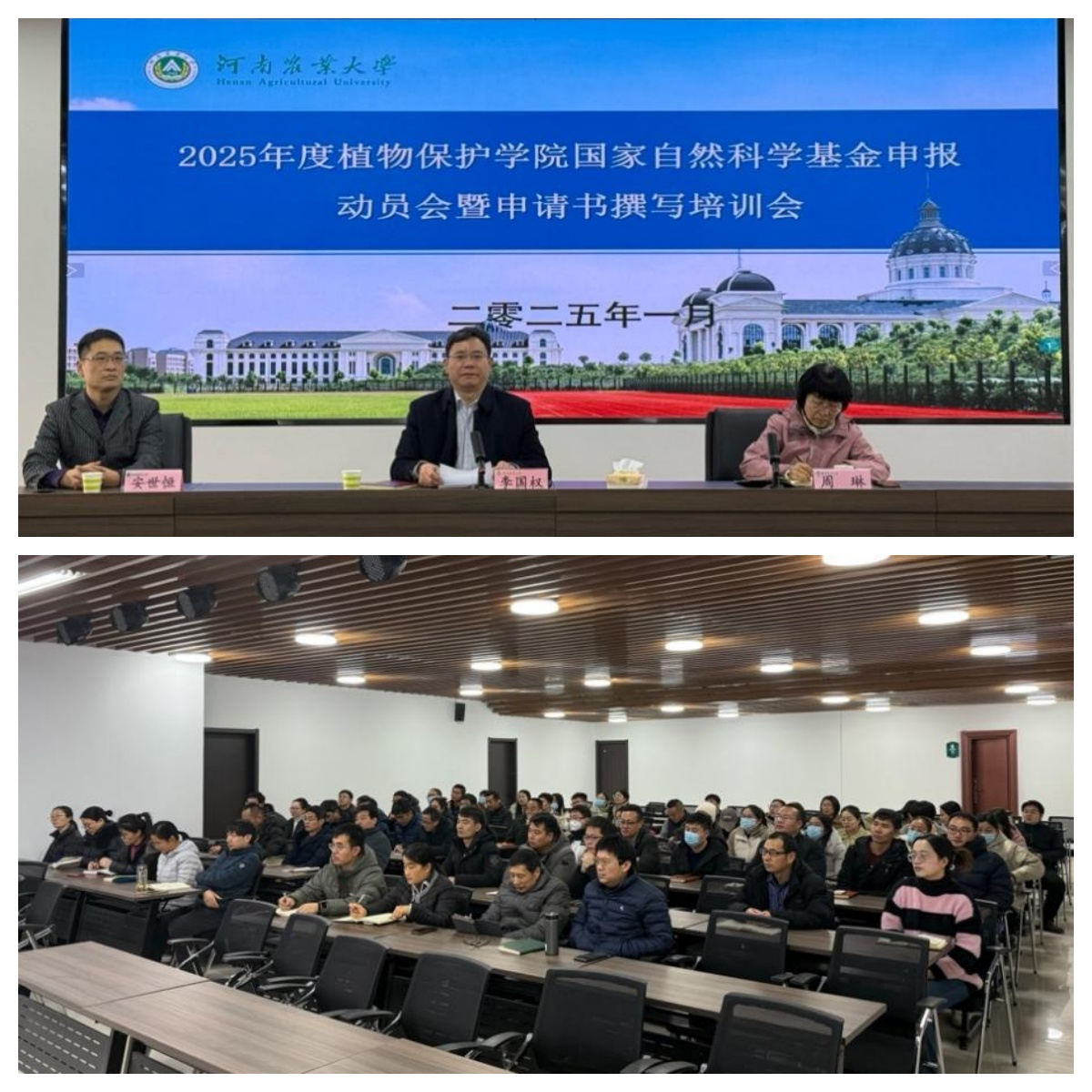 于六楼会议室召开2025年度国家自然科学基金申报动员会暨申请书撰写培训会。院党委书记李国权、院长周琳、副院长安世恒出席会议,各学科教师代表参加会议。会议由李国权主持。