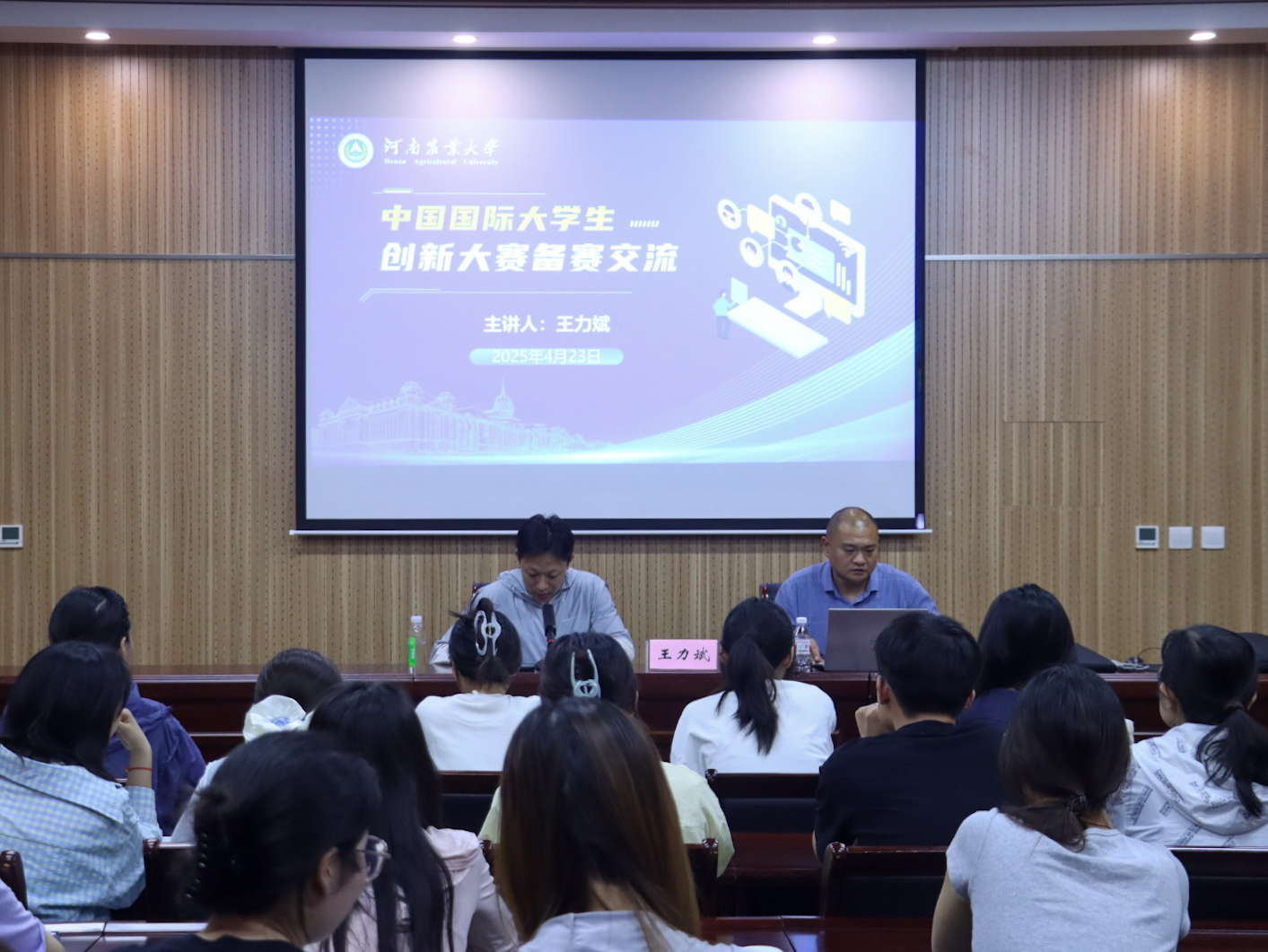 于龙子湖校区第二实验楼217会议室举办中国国际大学生创新大赛备赛宣讲会。会议邀请招就办创新创业指导科科长王力斌进行备赛宣讲,晋级校赛的同学和指导老师们参加会议,会议由辅导员郭俊阳主持。
