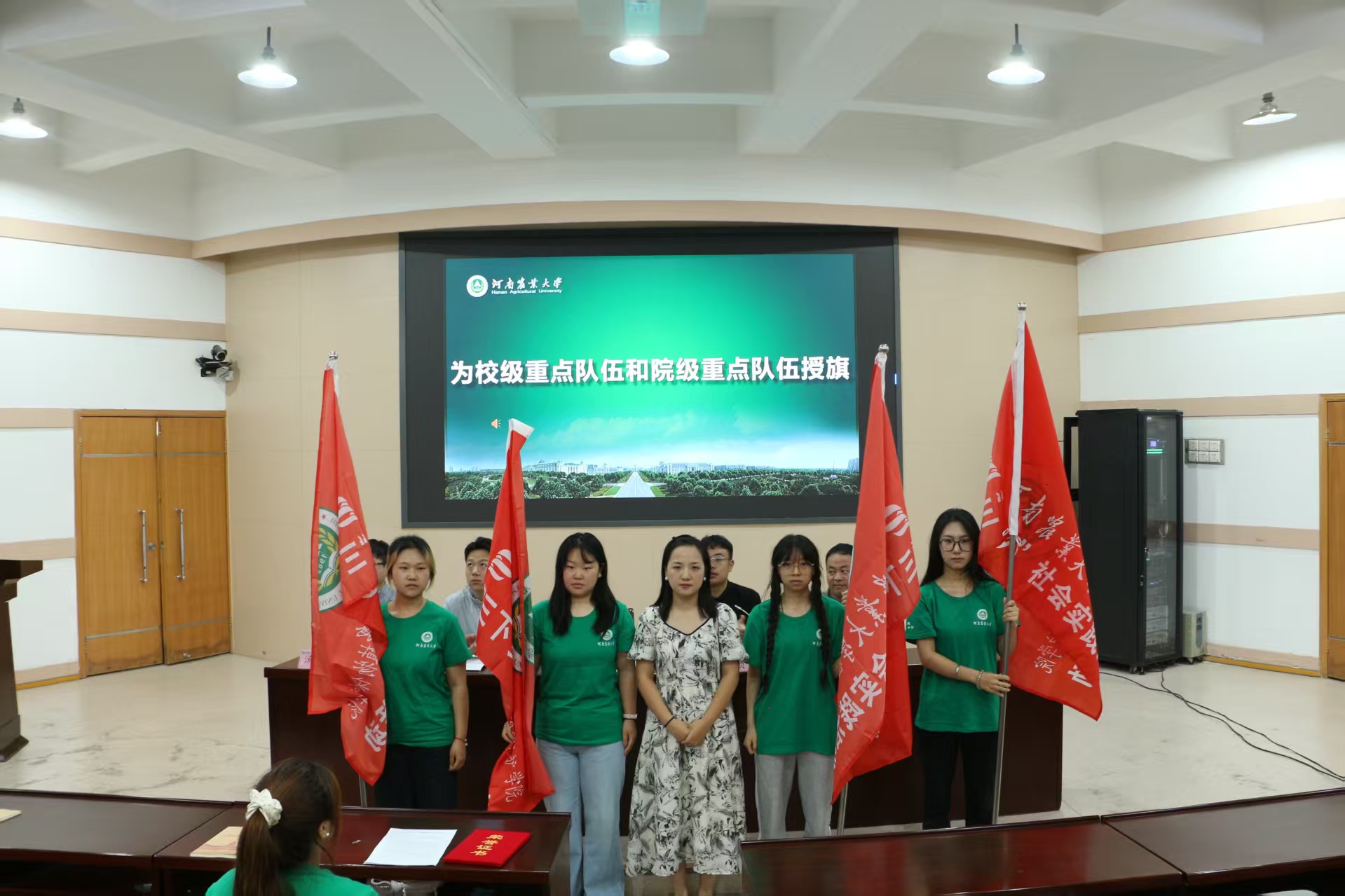 院团委书记黄姗姗为校级、院级重点队伍授旗,植保学子将继续在这个盛夏投身基层、服务社会,为基层发展注入活力,将青年力量与国家战略同频共振。