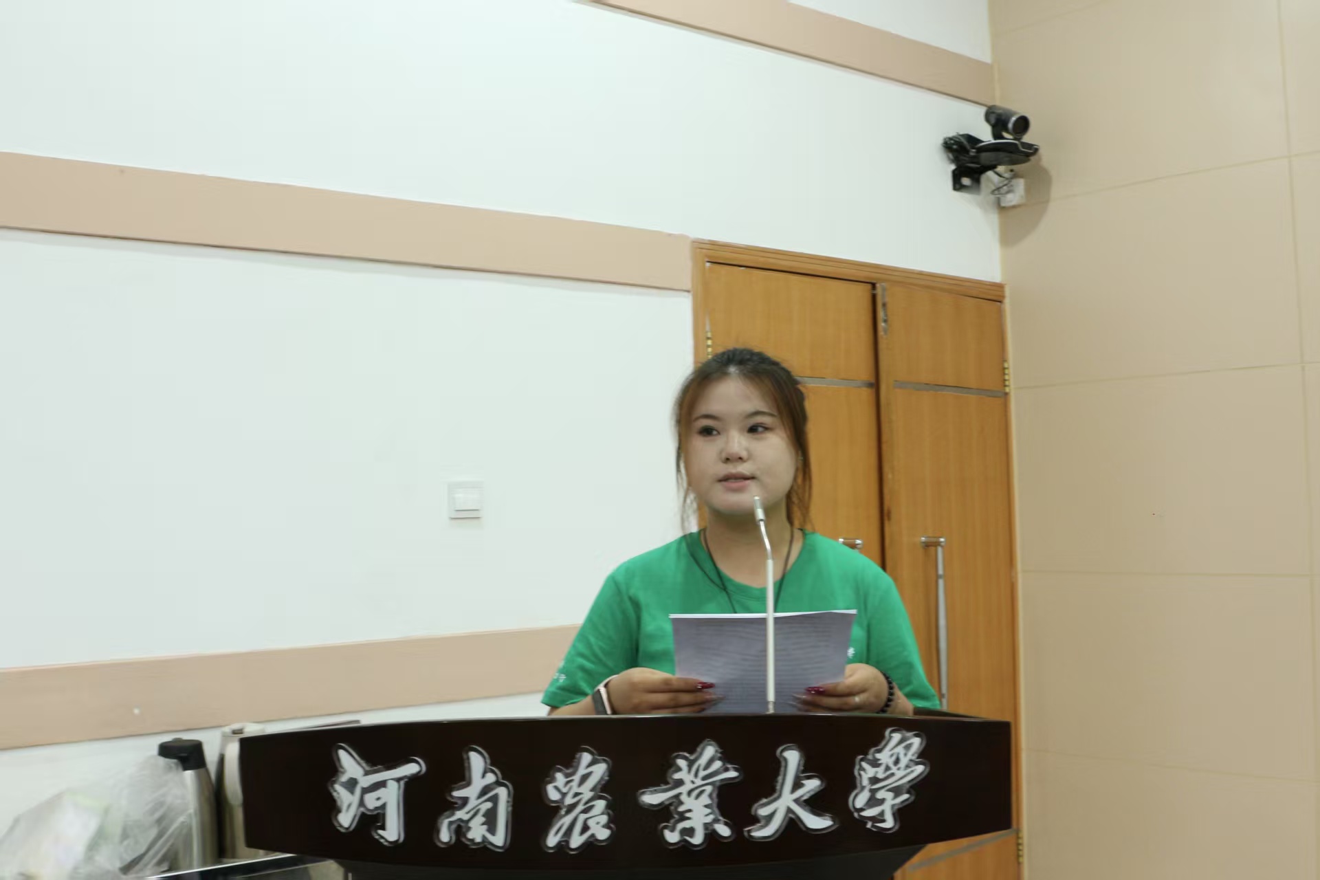 社会实践团队学生代表李佳欣上台发表见解,她分享了自己对社会实践活动经历的看法与感受,强调乡村振兴不仅是经济的振兴,更是生态、文化、社会的全面振兴。作为青年学子,将肩负着时代的使命,不忘初心,扎根乡土,用青春的热血和智慧为乡村振兴贡献力量,展现新时代青年风采,为实现中华民族伟大复兴的中国梦砥砺前行。
