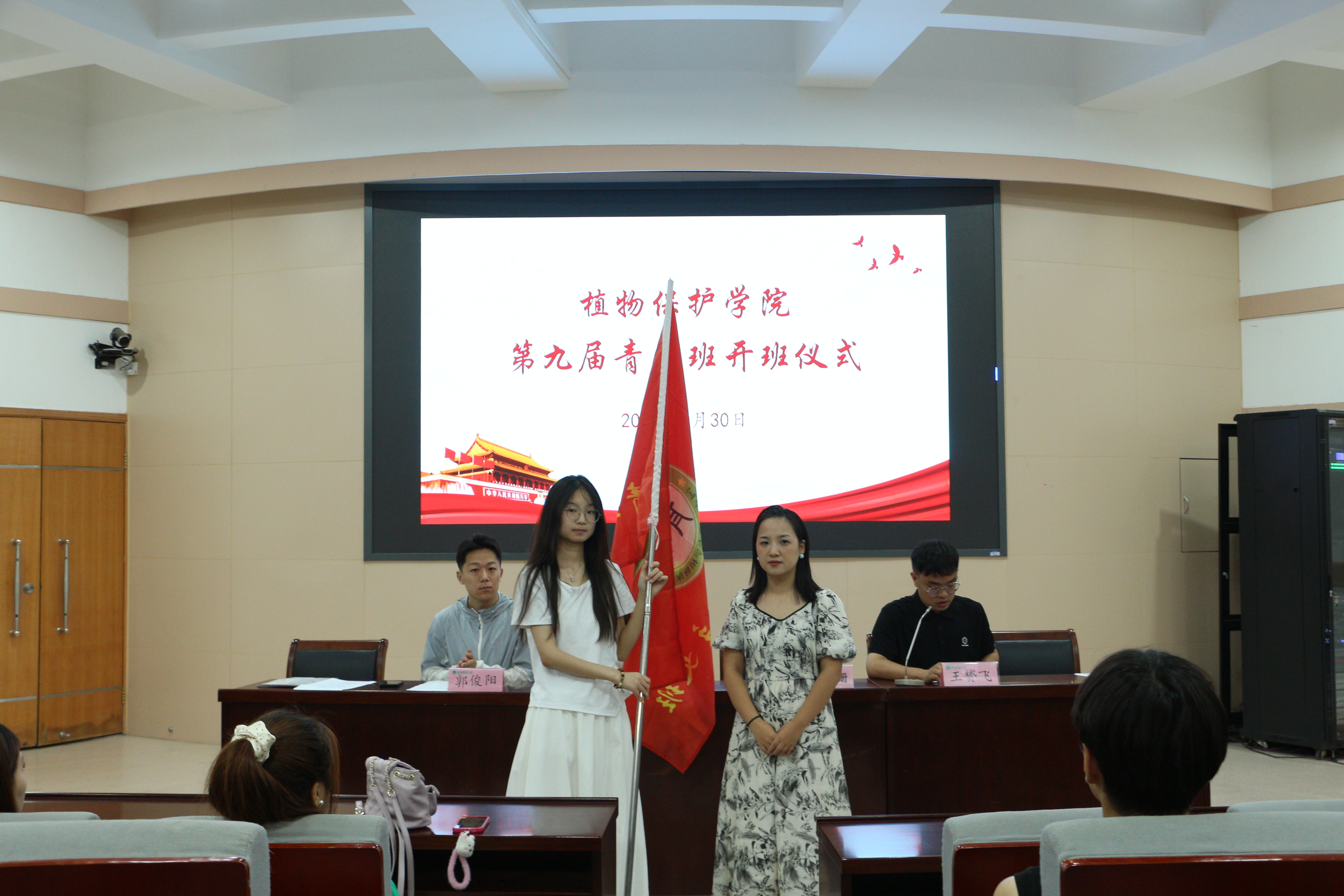 黄姗姗为第九届青马班学生代表授旗,并对青马班学员提出三点希望和要求:一是要坚定理想信念,加强理论学习,做一名马克思主义的坚定拥护者;二是要坚持知行合一,锤炼过硬本领,做一名马克思主义的勇于实践者;三是勇于担当作为,发扬斗争精神,做一名马克思主义的积极传播者。