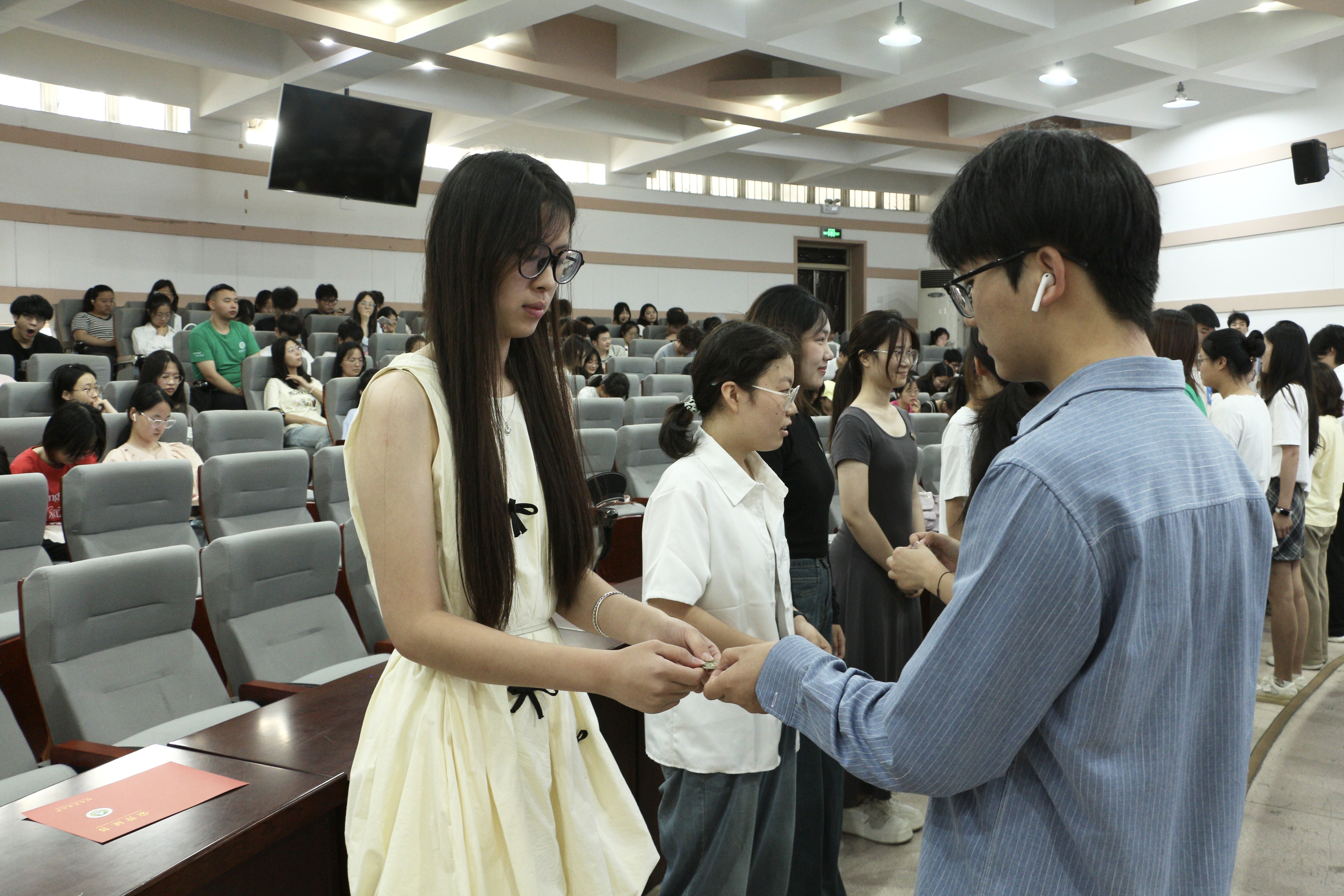 于文化路校区300人报告厅举办第八届青马班结业暨第九届青马班开班仪式。青马班班主任茹茜,院团委书记黄姗姗、24级辅导员郭俊阳出席活动,仪式由辅导员王赟飞主持。
