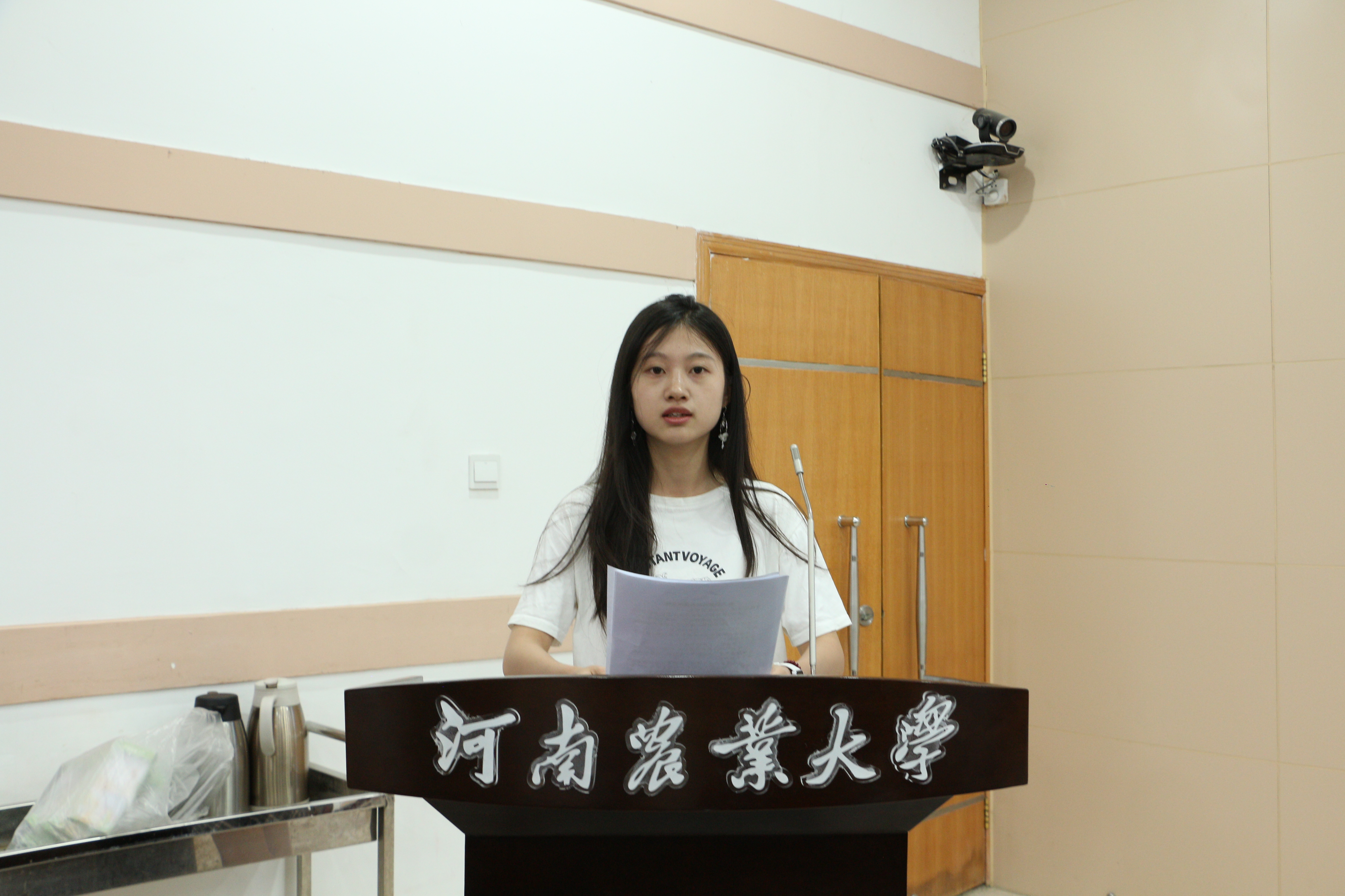 第九届青马班班长屠洪瑞发言,作为新一届青马班班长,将进一步坚定信仰,怀揣青马精神,以植保学子饱满的热情投身社会主义现代化建设,为乡村振兴注入青春力量。