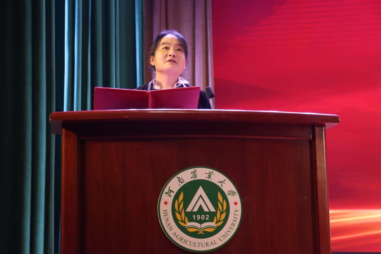 新生代表2025级硕士生代表郭双丽表达了对未来学习生活的憧憬与决心,表示将恪守学术规范、勤勉刻苦,在农大这片生生不息的沃土上,以青春为笔,以奋斗为墨,书写属于“植保人”的精彩华章。