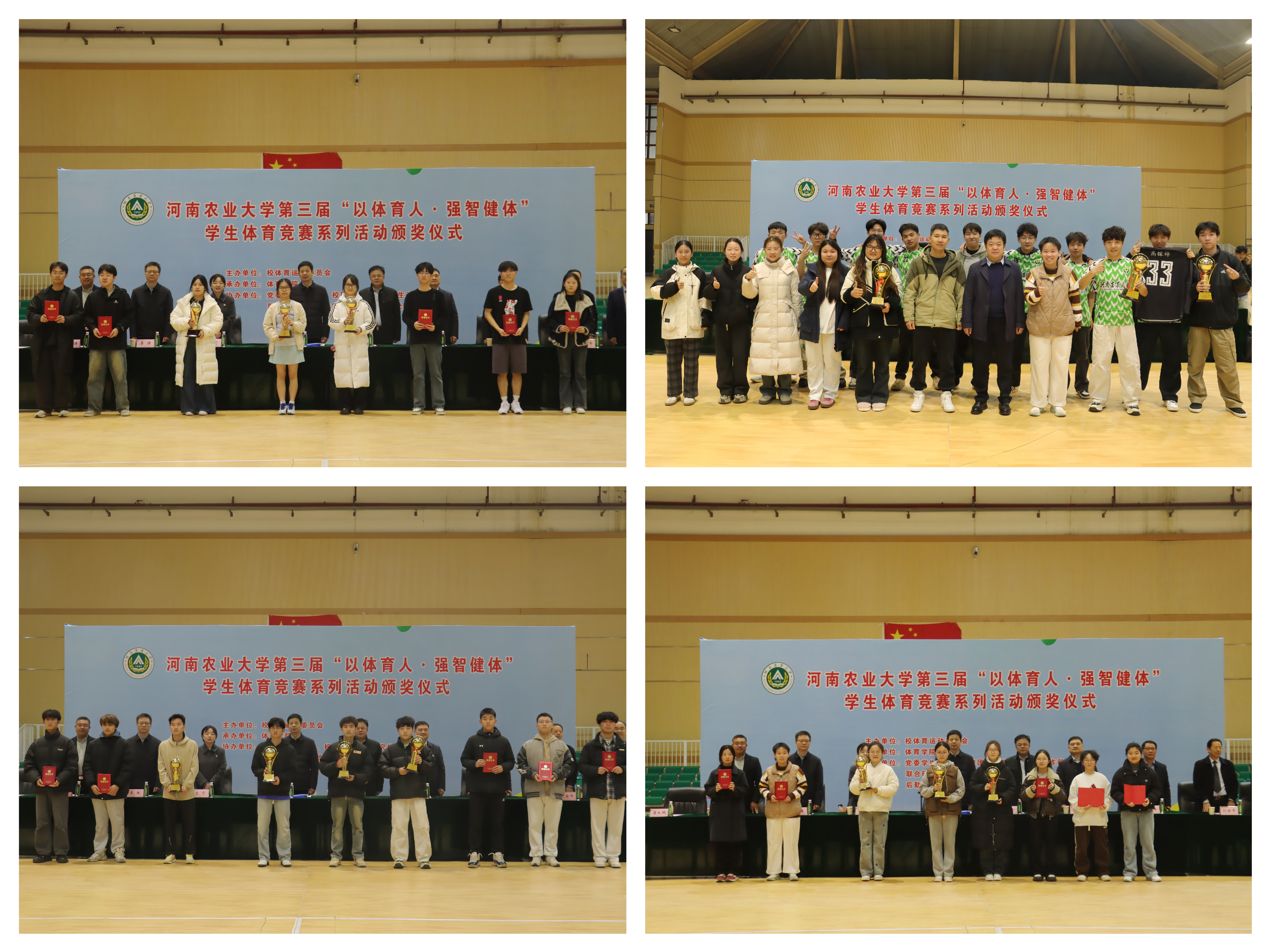 本网讯(通讯员 赵涵滢 图片 冯雯雯)12月9日,第三届“以体育人·强智健体”学生体育竞赛系列活动颁奖仪式在龙子湖校区悦动馆二楼圆满举行。银河娱乐场